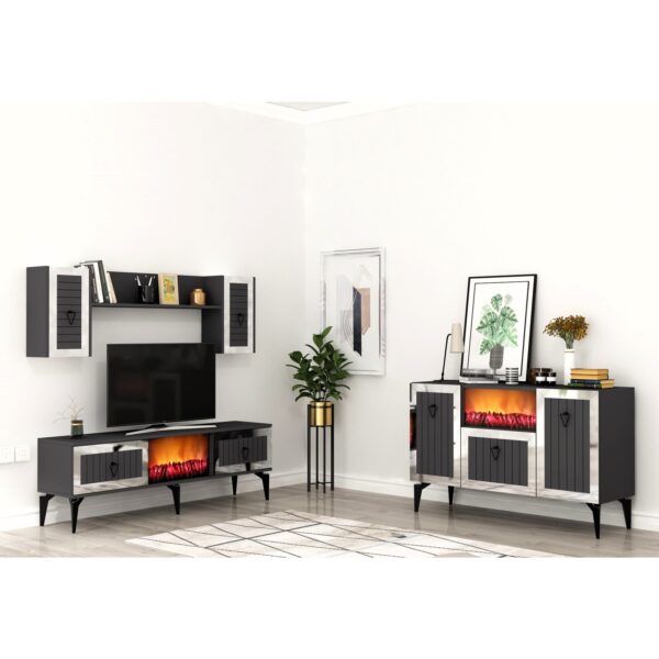 Linda Şömineli Tv Ünitesi ve Şömineli Konsol 2’li Salon Takimi Antrasit-Gümüş
