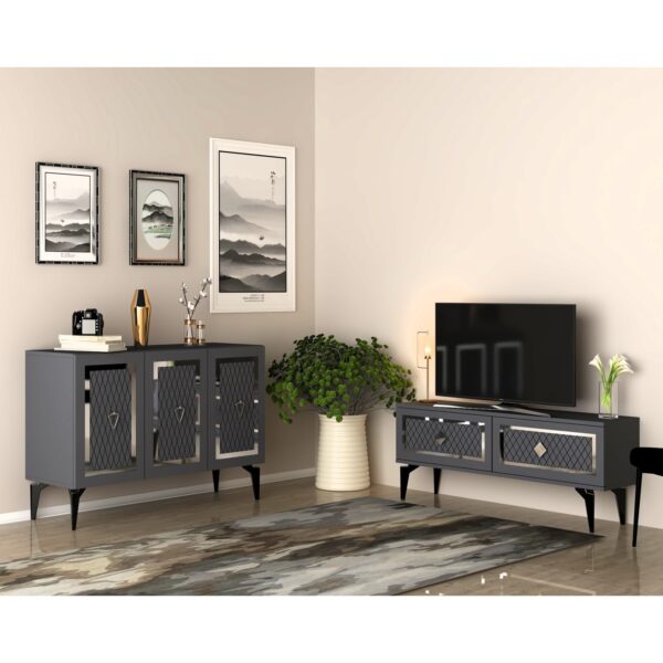 Demonte Dekor Karel Tv Sehpası ve Konsol 2’li Salon Takımı Antrasit-Gümüş