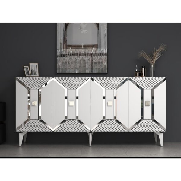 Demonte Dekor Yumedi Modern Konsol Beyaz-Gümüş