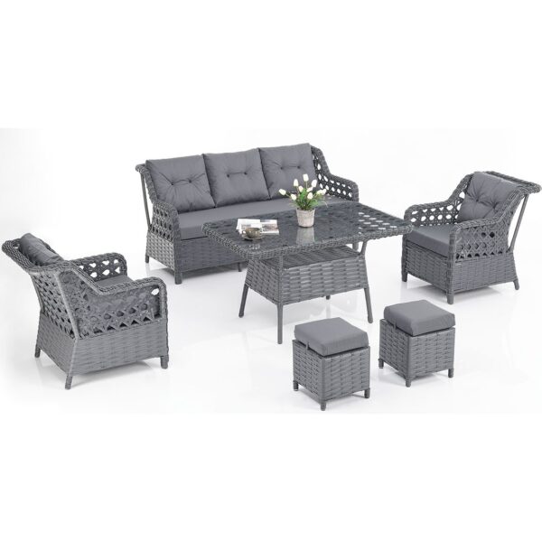 EVDEMO Deniz Rattan Puflu Bahçe Balkon Takımı 3+1+1 Gri