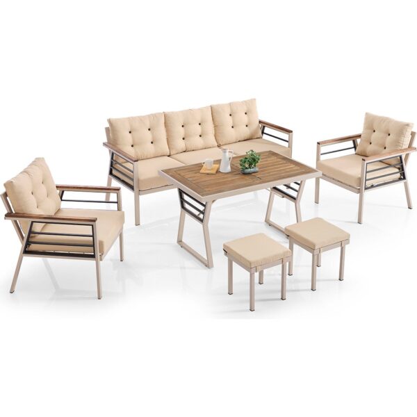 EVDEMO Lara Metal Puflu Bahçe Balkon Takımı 3+1+1+Ahşap Masa Cappuccino