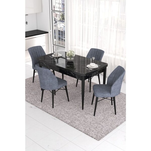 Canisa Concept Eva Serisi, 80X132 Açılabilir Mdf Mutfak Masa Takımı, Siyah Mermer Desen Masa , 4 Sandalye