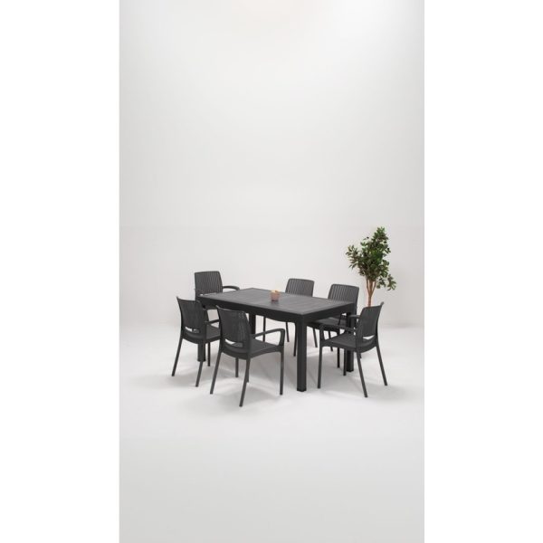 Mandella 90 x 150 6 Kişilik Antrasit Plastik Bahçe Mobilyası Mutfak Balkon Takımı