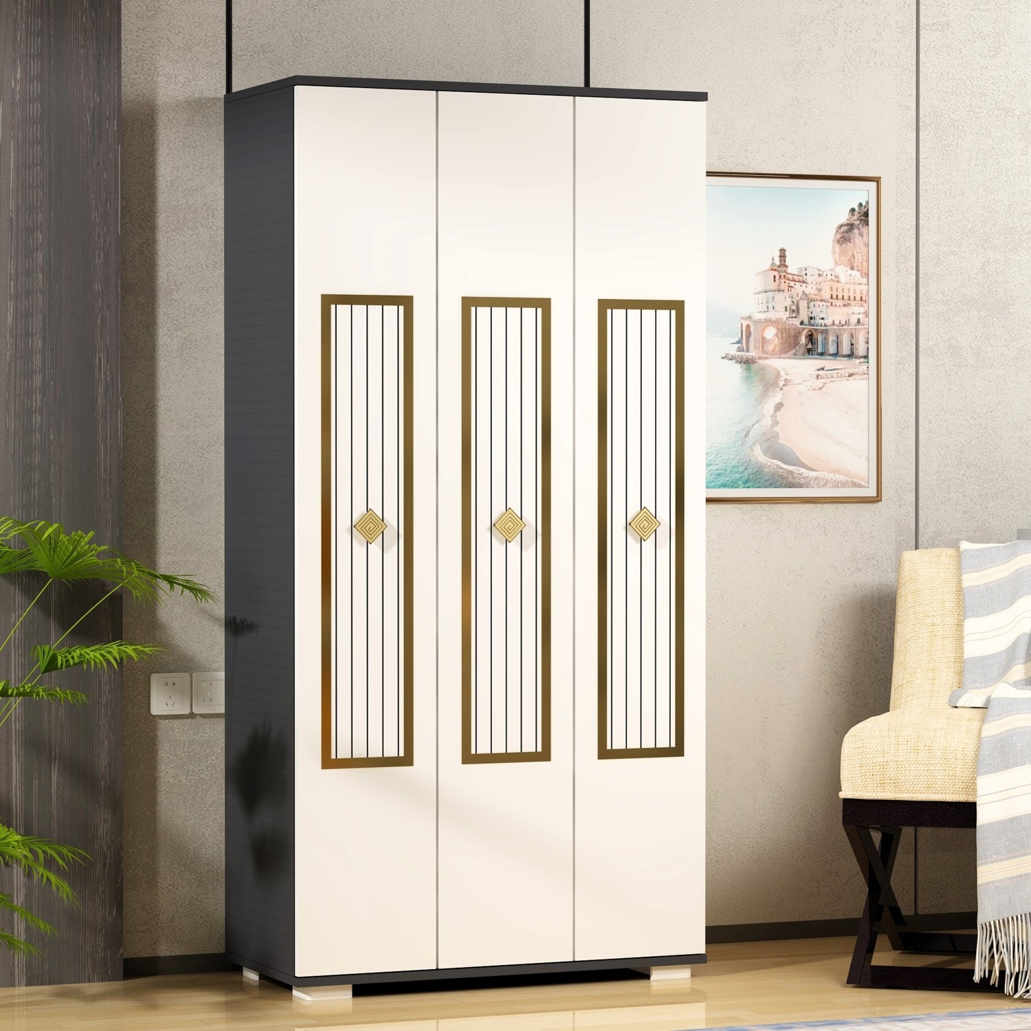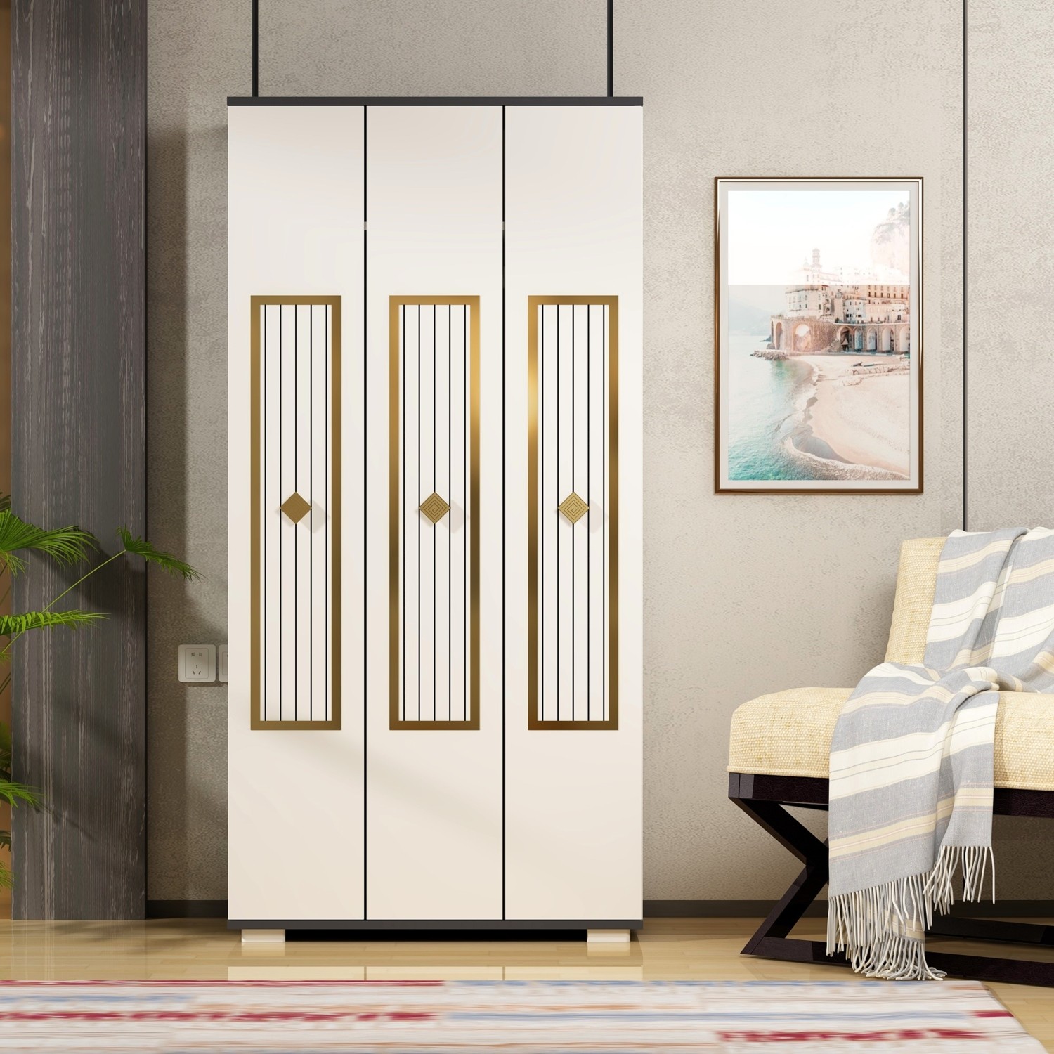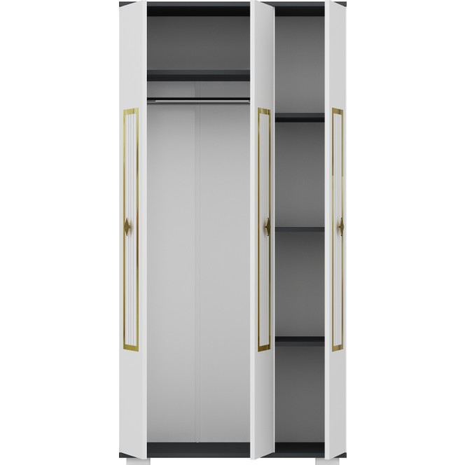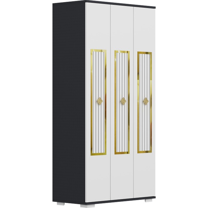 Nora (C) 3 Kapaklı Gardırop ve Çok Amaçlı Dolap Antrasit-Beyaz-Altın