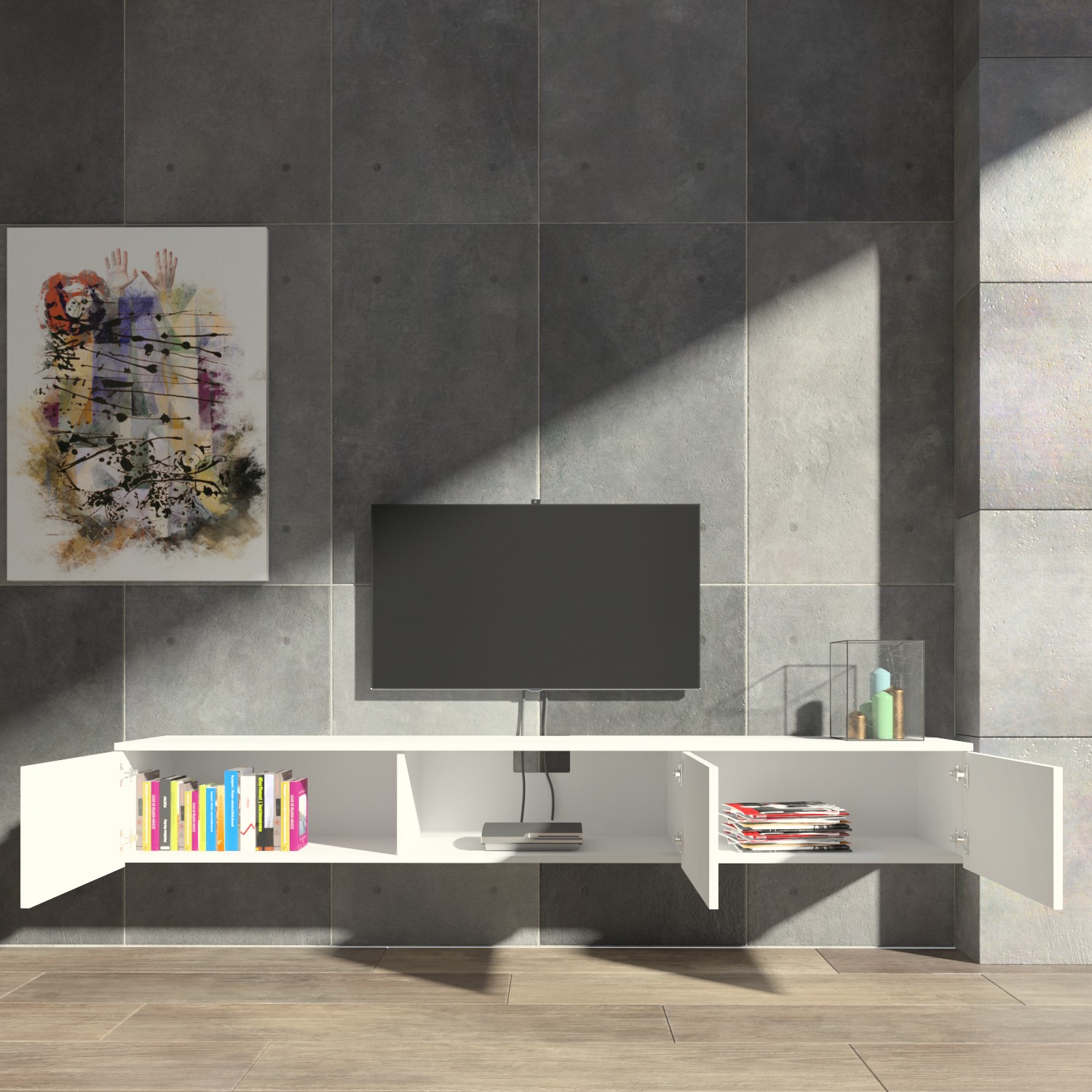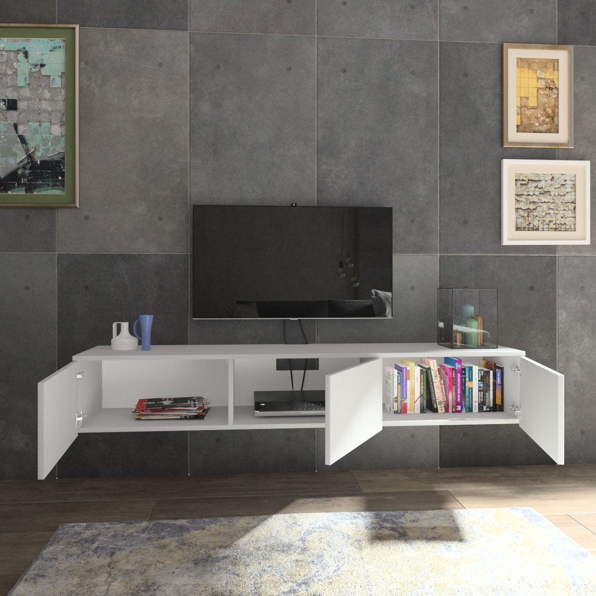31 cm Yükseklik X 180 cm Uzunluk X 30 cm Derinlik; Kurulu olmadan (demonte) gönderilmektedir, minifix bağlantı sistemi kullanılmıştır.; Ürün 1. sınıf suntalam malzemeden imal edilmiştir, ürün rengi Mat Beyaz’dır.; Ürün duvara monte edilmektedir, arkalık ve kablo kanalı mevcuttur.; Yere koyularak ( kapaklar alttan el takmalı olduğu için ters koyularak ) veya ayak takılarak kullanım için uygundur ( ayak dahil değildir ).; Kurulum için resimli ve açıklamalı kolay kurulum kılavuzu ve video bulunmaktadır.; Tuğla ve beton duvara uygun dübel bizim tarafımızdan gönderilmektedir, duvar bağlantı elemanları mevcuttur.