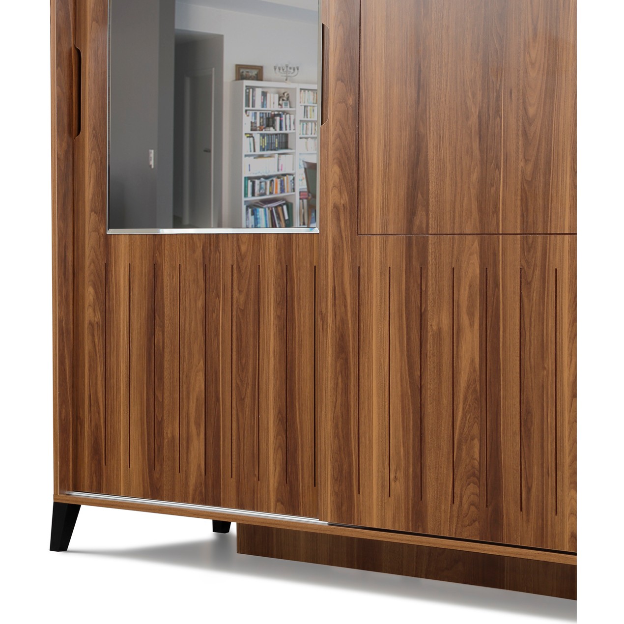 Pasific Home Huga Sürgülü 2 Kapaklı Aynalı Gardırop, Ceviz ,140 cm