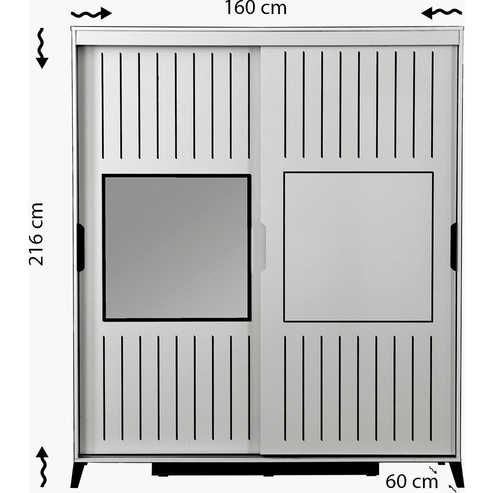 Pasific Home Huga Sürgülü 2 Kapaklı Aynalı Gardırop, Ceviz ,160 cm