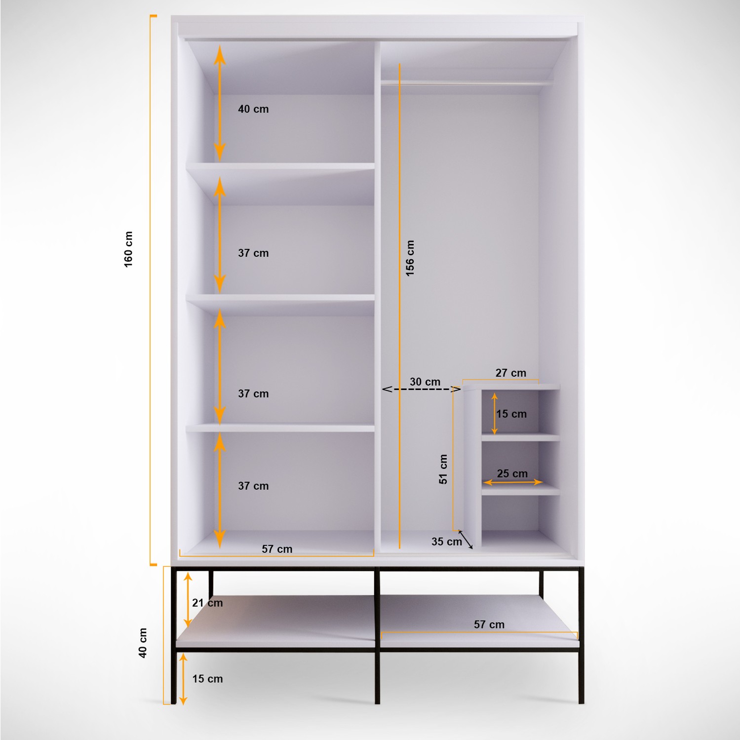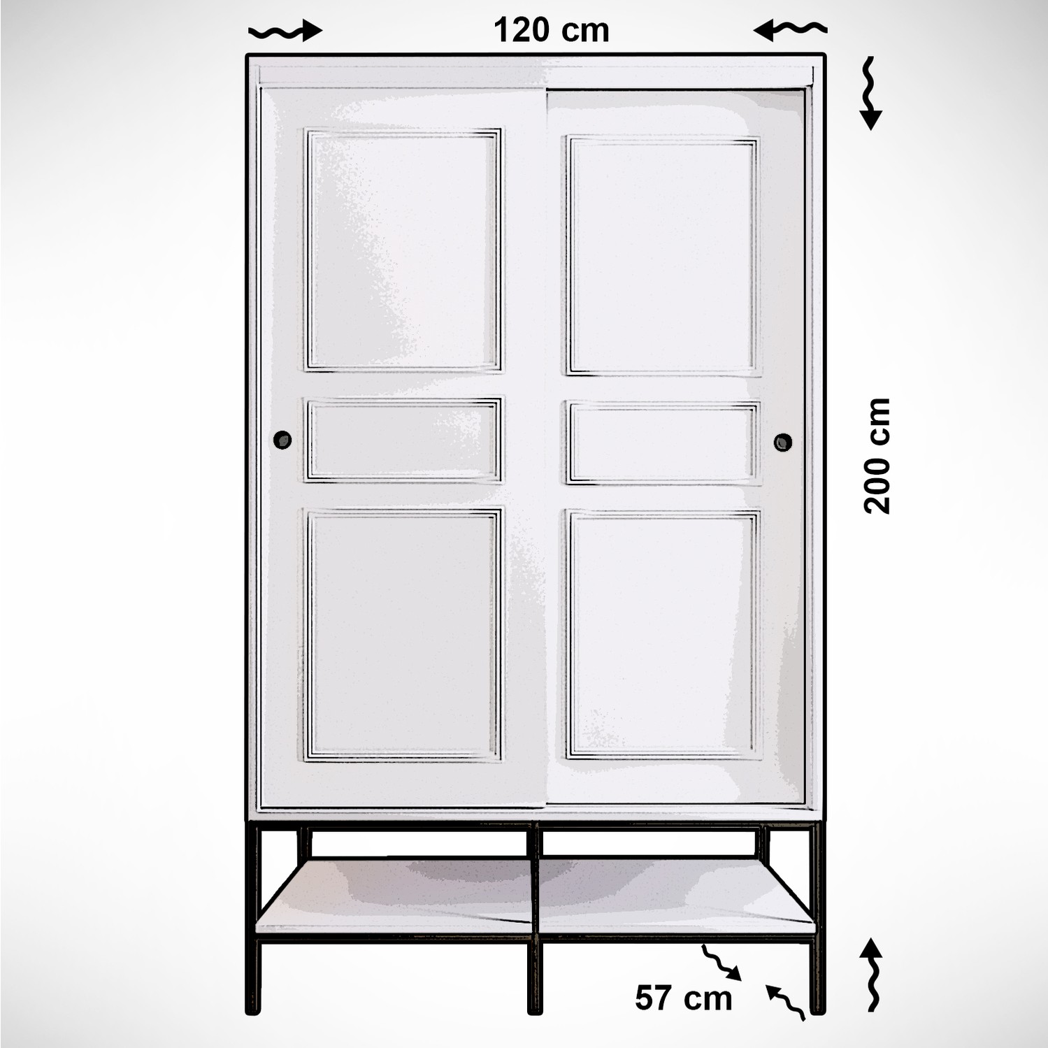 Pasific Home Martin 2 Kapaklı Sürgülü Gardırop Elbise Dolabı,120 cm, Beyaz & Beyaz Mermer