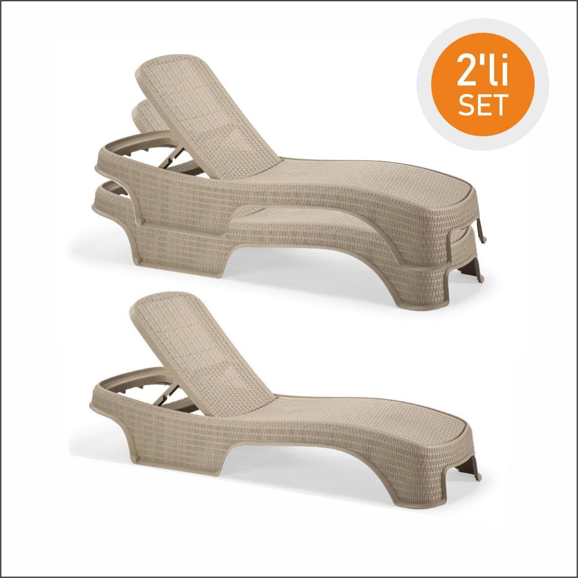 Peronline Brezza Royal Rattan Bahçe Havuz Şezlong Cappuccino 2 Adet