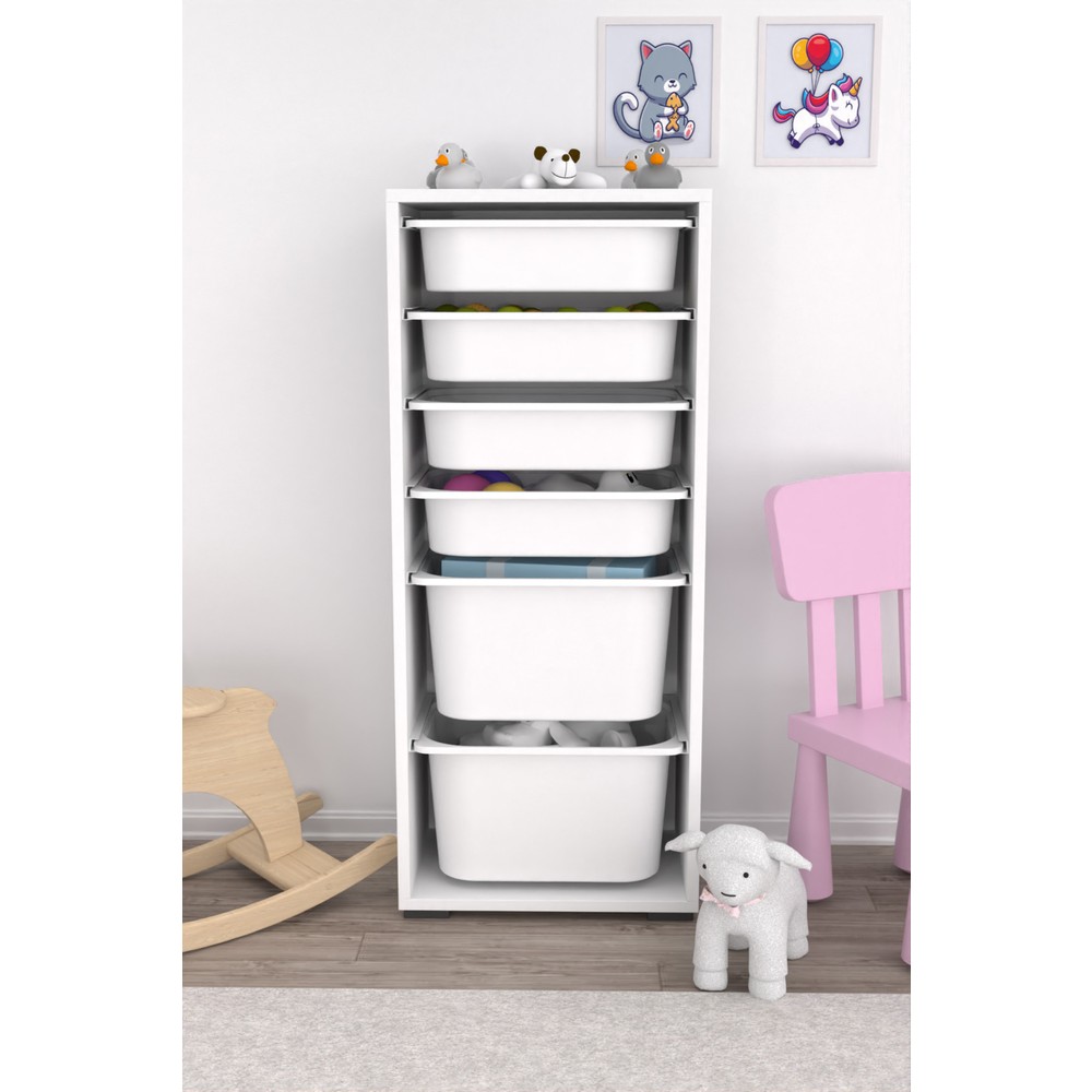 Pratico 2 Büyük 4 Küçük Beyaz Sepetli Oyuncak Dolabı