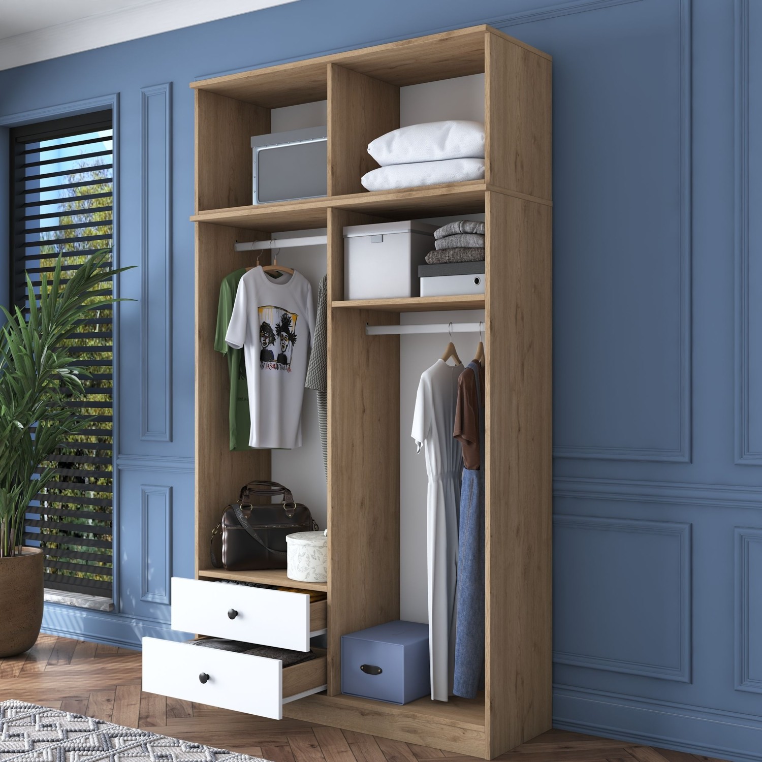 Rani BA121 Geniş Gardırop Elbise Dolabı 8 Kapaklı 2 Çekmeceli 1 Raflı 2 Askılı Sepet Ceviz – Beyaz