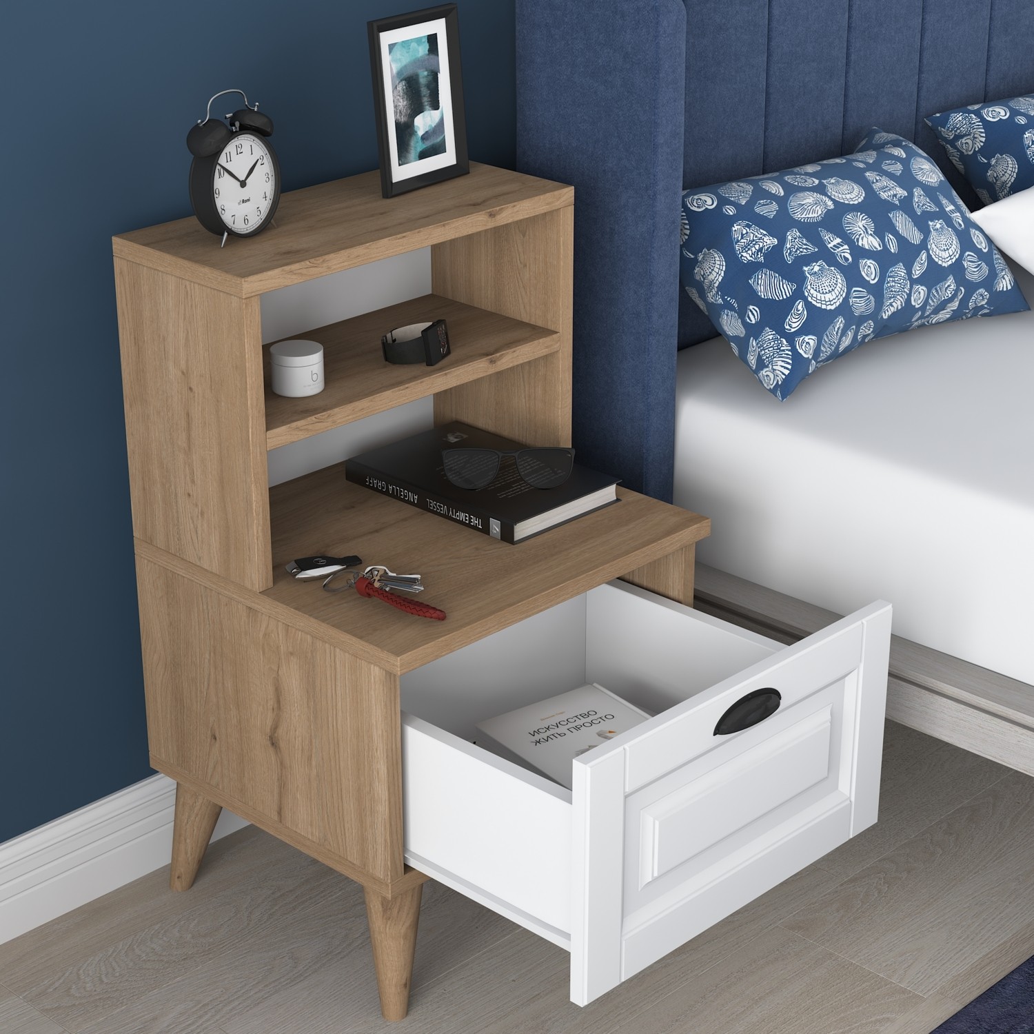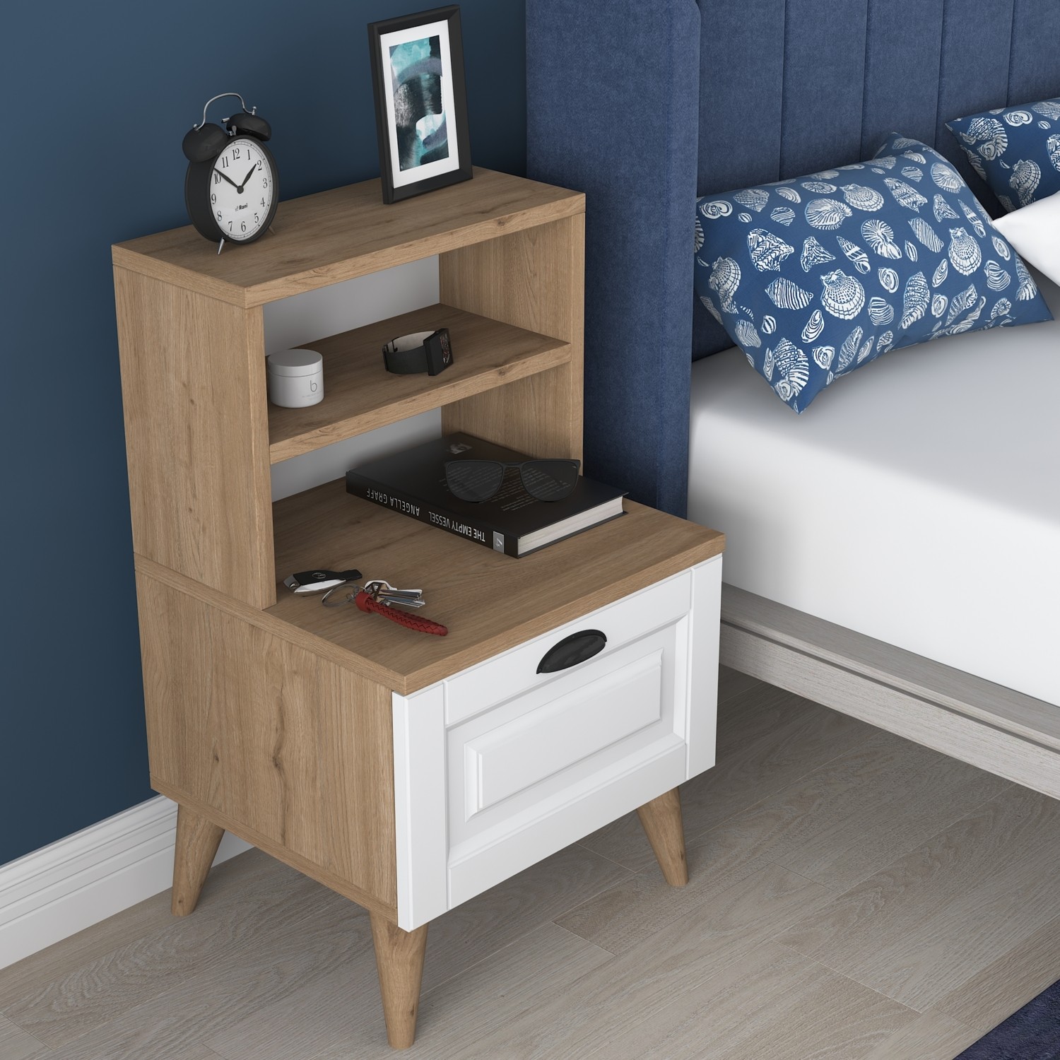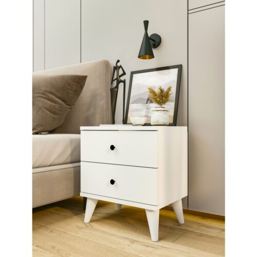 Rani BD105 Komodin 2 Raflı Membran Çekmeceli Komodin Sepet Ceviz – Beyaz