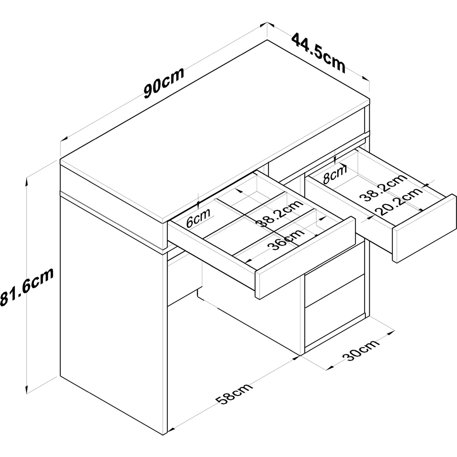 Makyaj Masası: Genişlik: 90 cm – Derinlik: 44,5 cm – Yükseklik: 81,6 cm