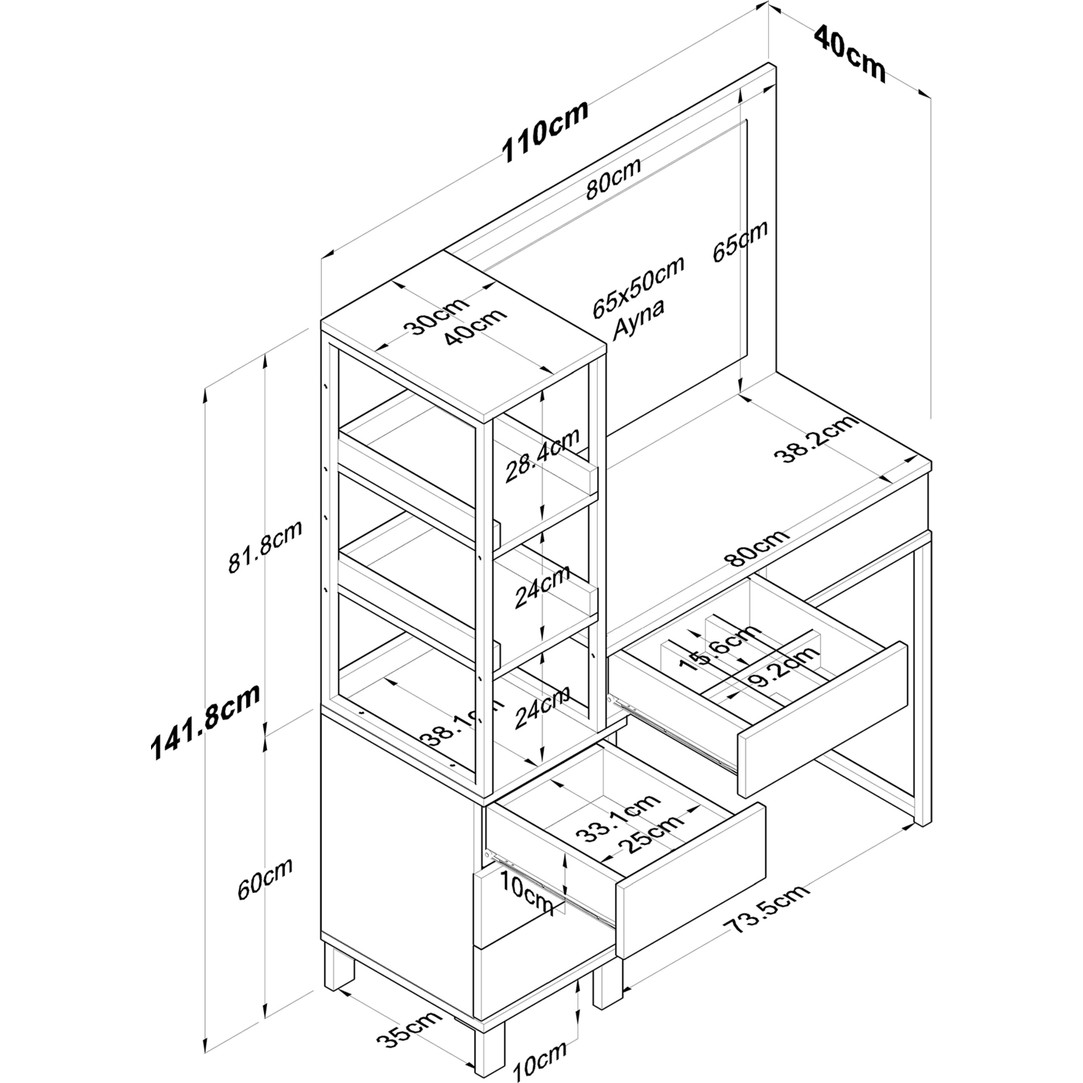 Genişlik: 110 cm – Derinlik: 40 cm – Yükseklik: 141,8 cm
