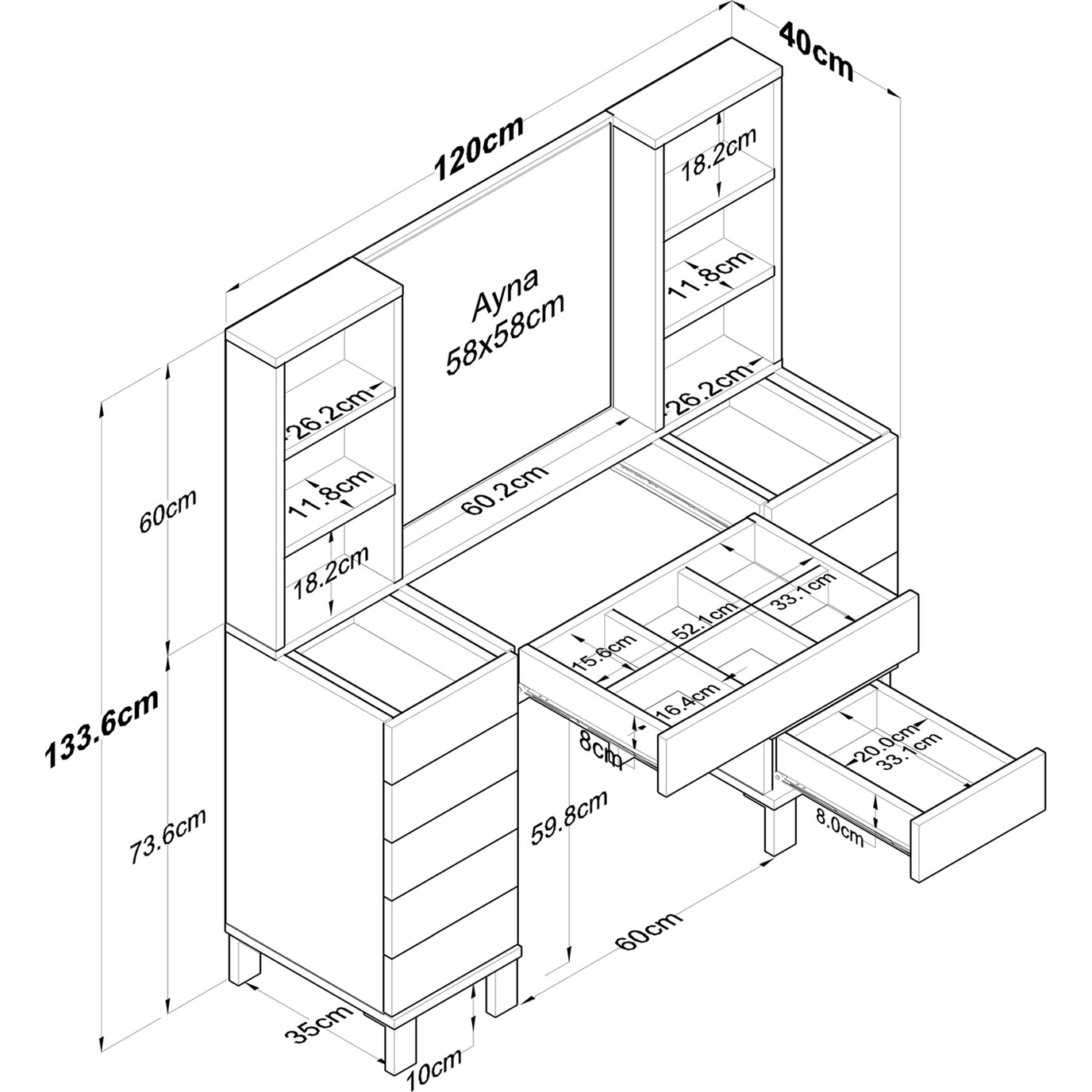 * Çekmece içindeki bölmeler takı, makyaj malzemeleri gibi eşyalarınızı kolayca düzenlemenizi sağlar.