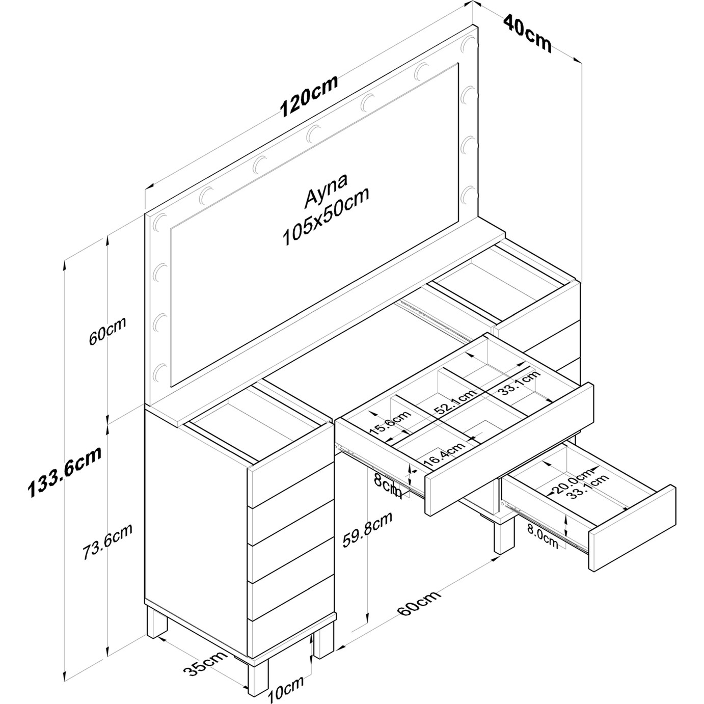 - Model: Rani BJ137 Hollywood Işıklı Makyaj Masası