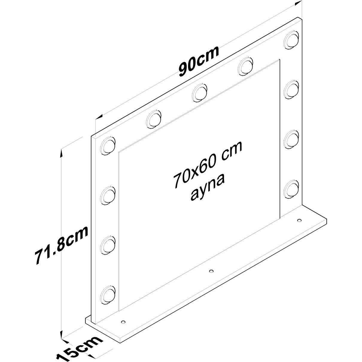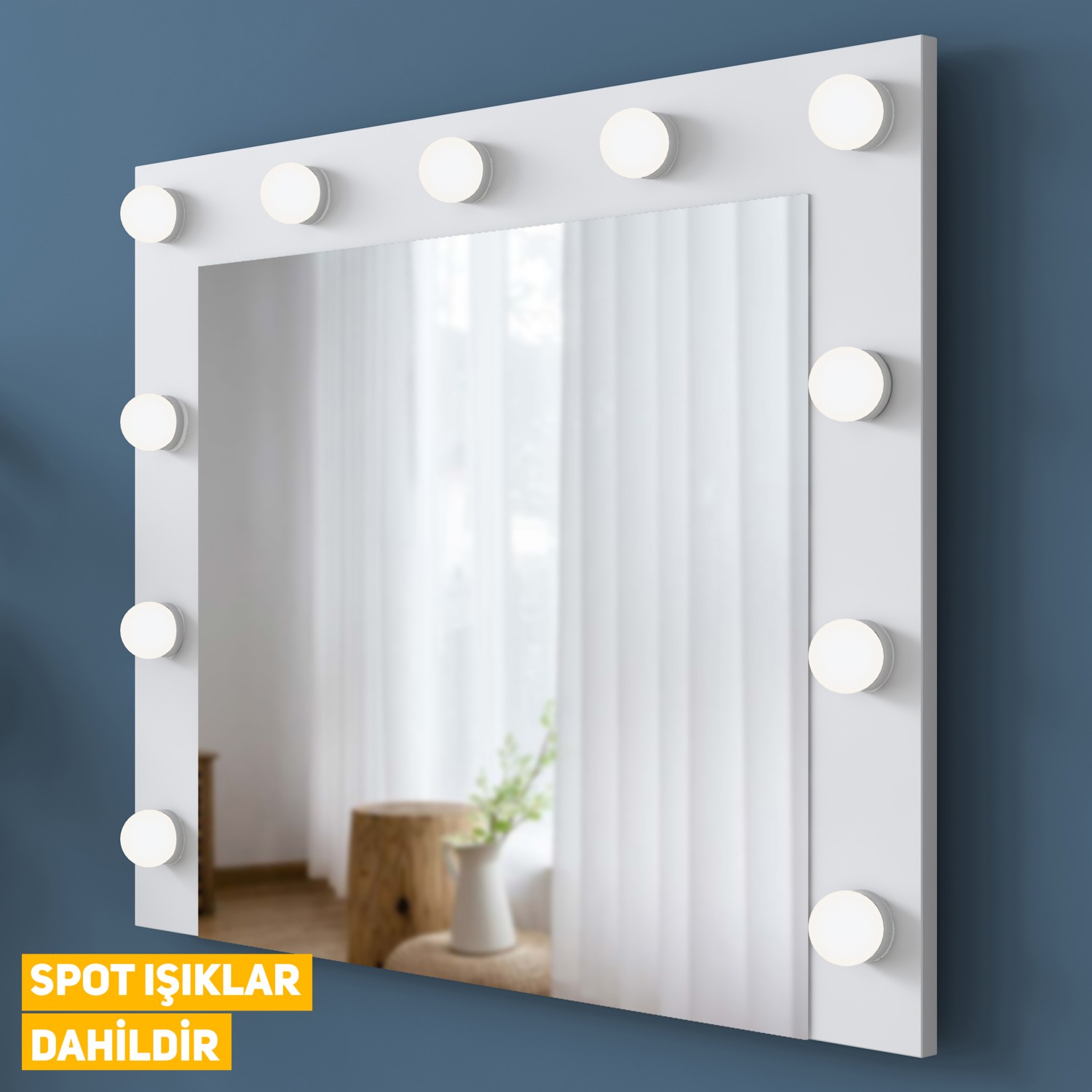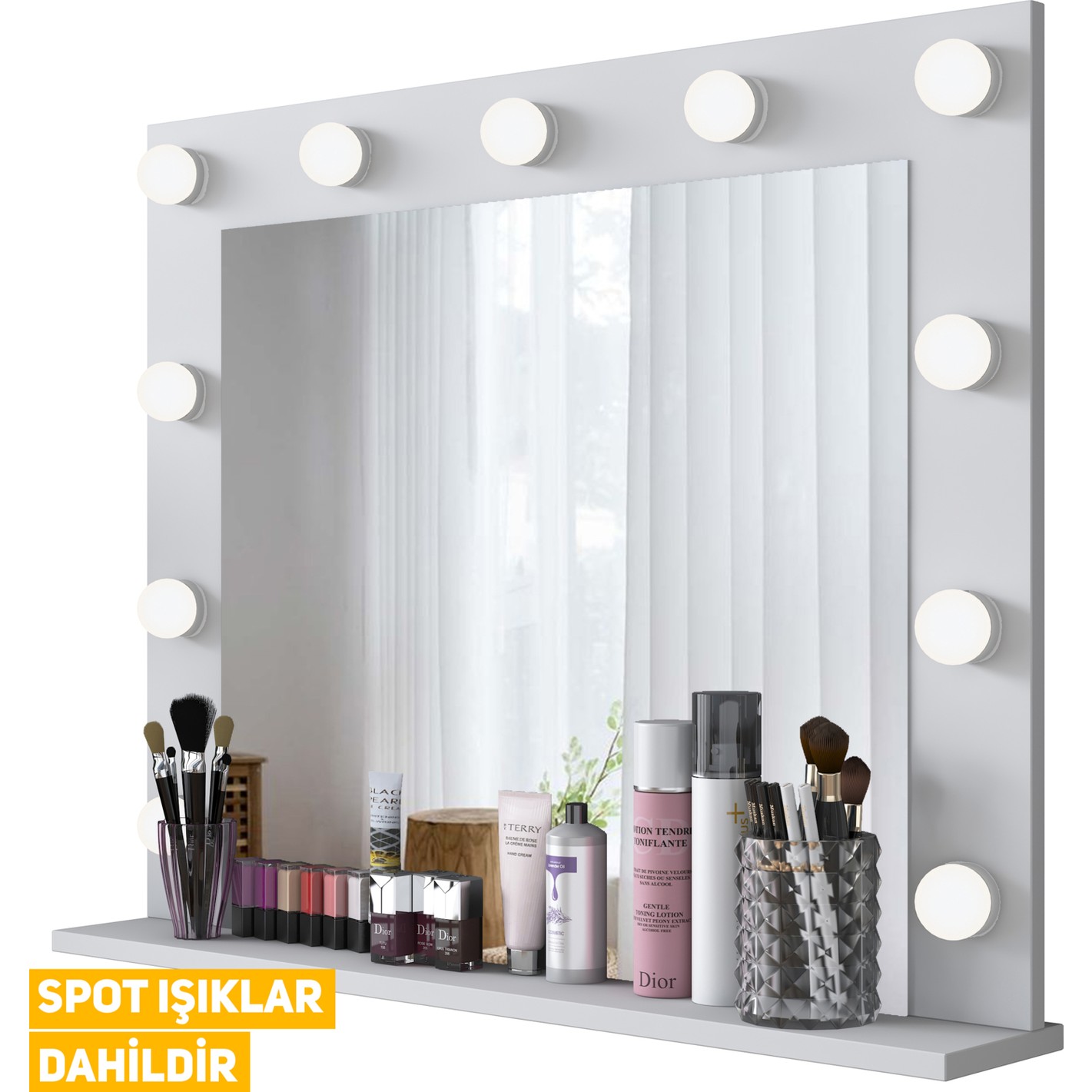 Rani EF108 Hollywood Işıklı Ayna Kulis Makyaj Aynası Spot Işıklar Dahil Ayna Beyaz
