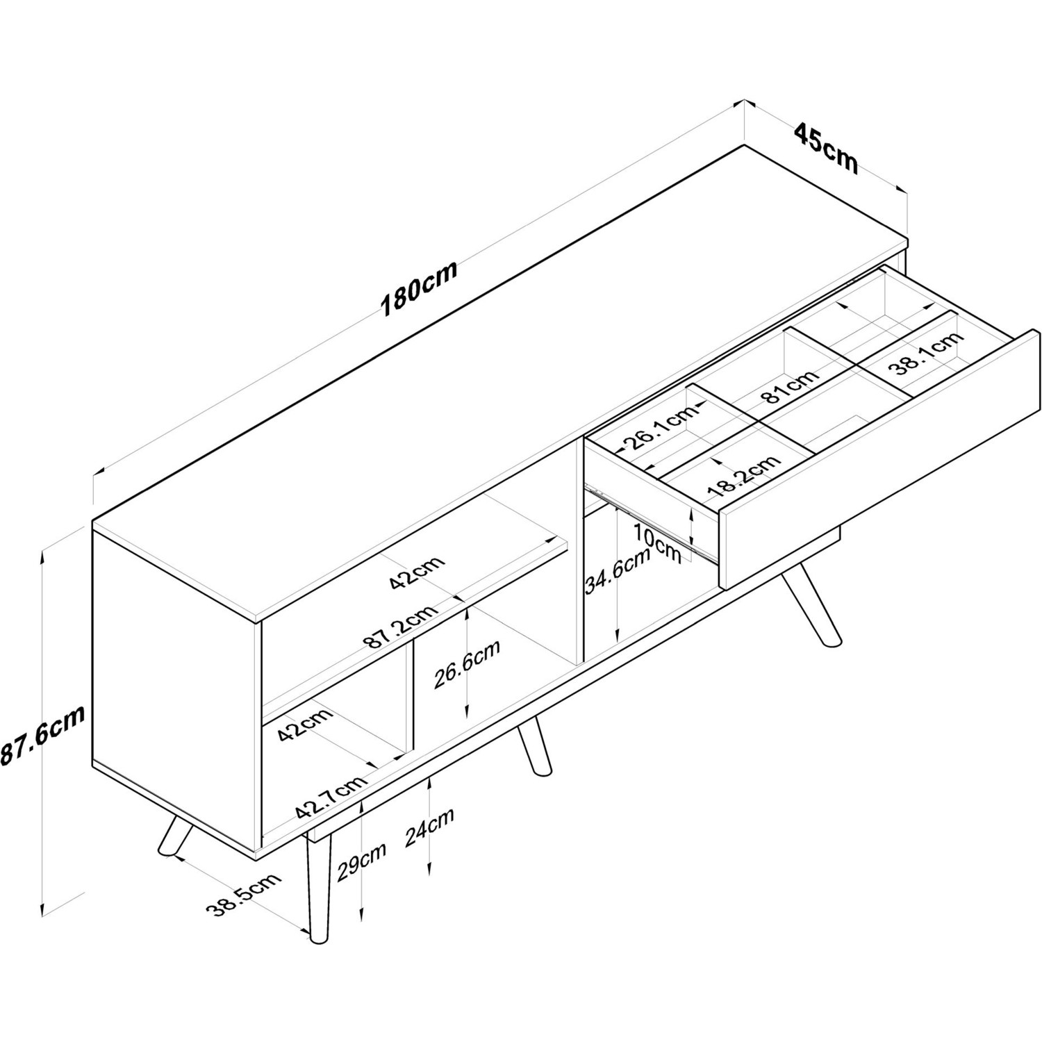 Konsol: Genişlik: 180 cm – Derinlik: 45 cm – Yükseklik: 87,6 cm