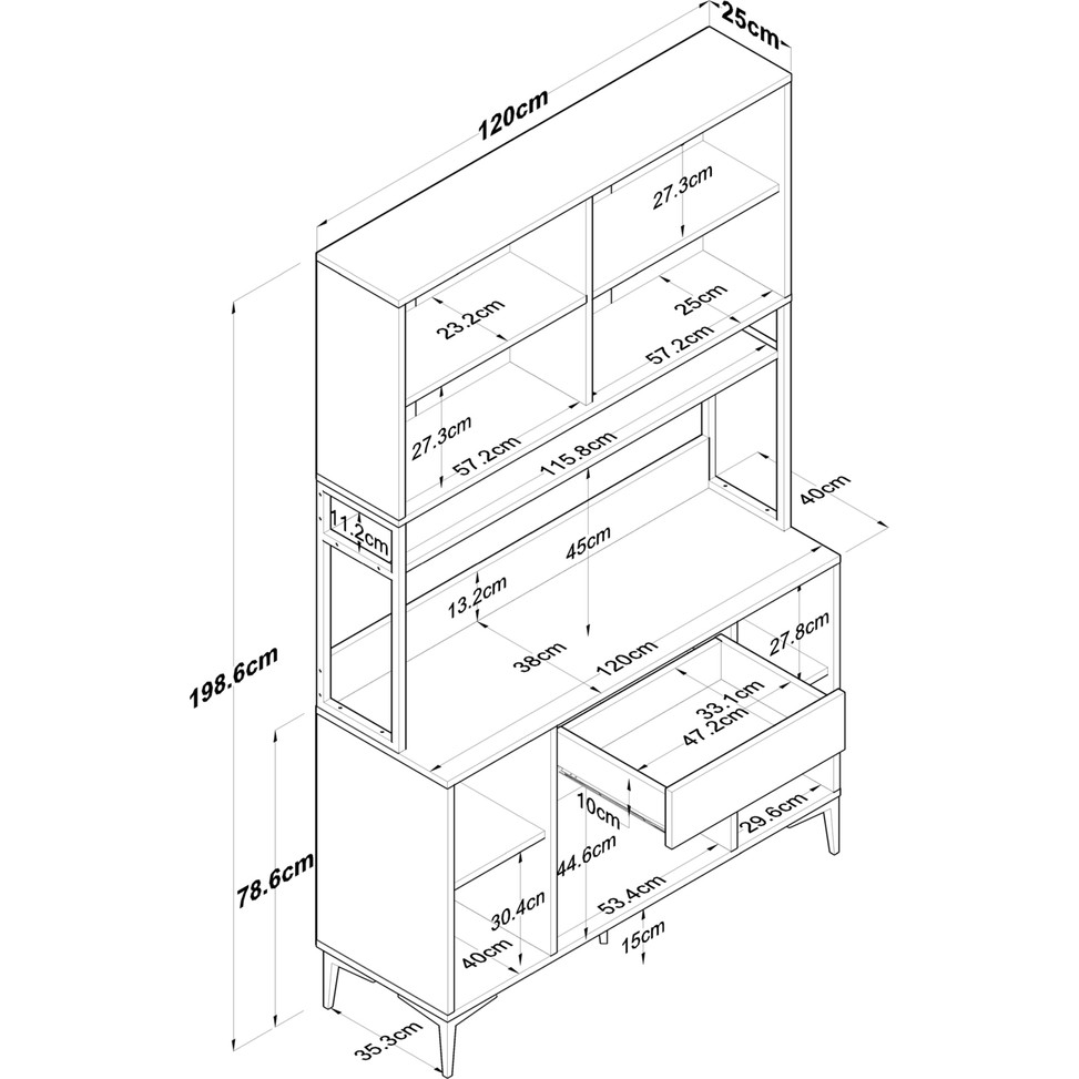 Genişlik: 120 cm – Derinlik: 40 cm – Yükseklik: 198,6 cm