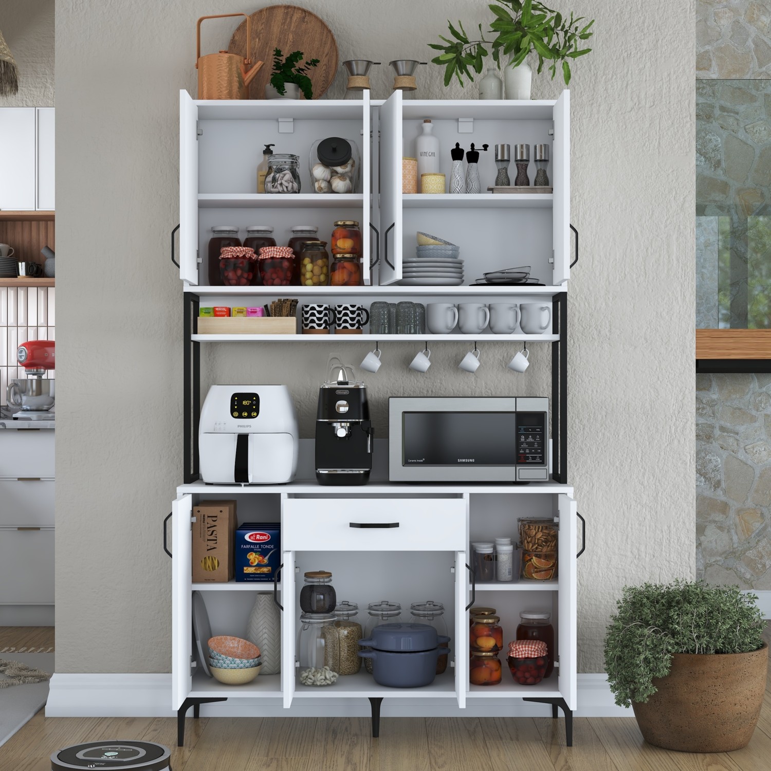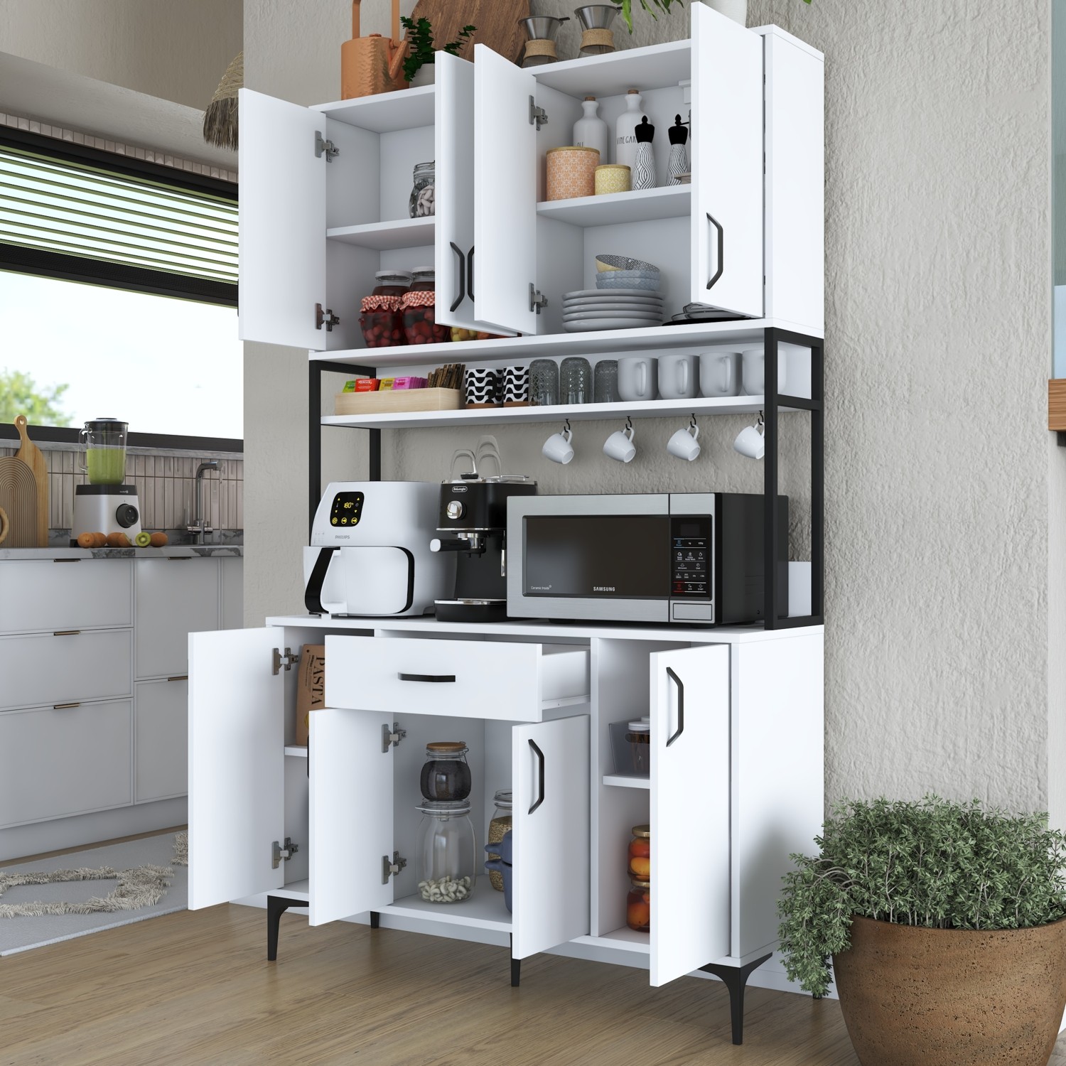 Rani JE127 Çok Amaçlı Dolap 8 Kapaklı 1 Çekmeceli Kiler Mutfak Dolabı Beyaz