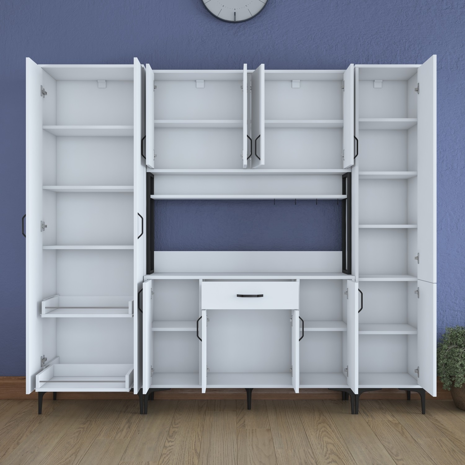 Rani JE132 Çok Amaçlı Dolap 12 Kapaklı 1 Çekmeceli Kiler Mutfak Dolabı Beyaz