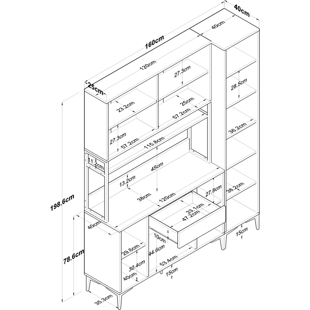 Genişlik: 160 cm – Derinlik: 40 cm – Yükseklik: 198,6 cm
