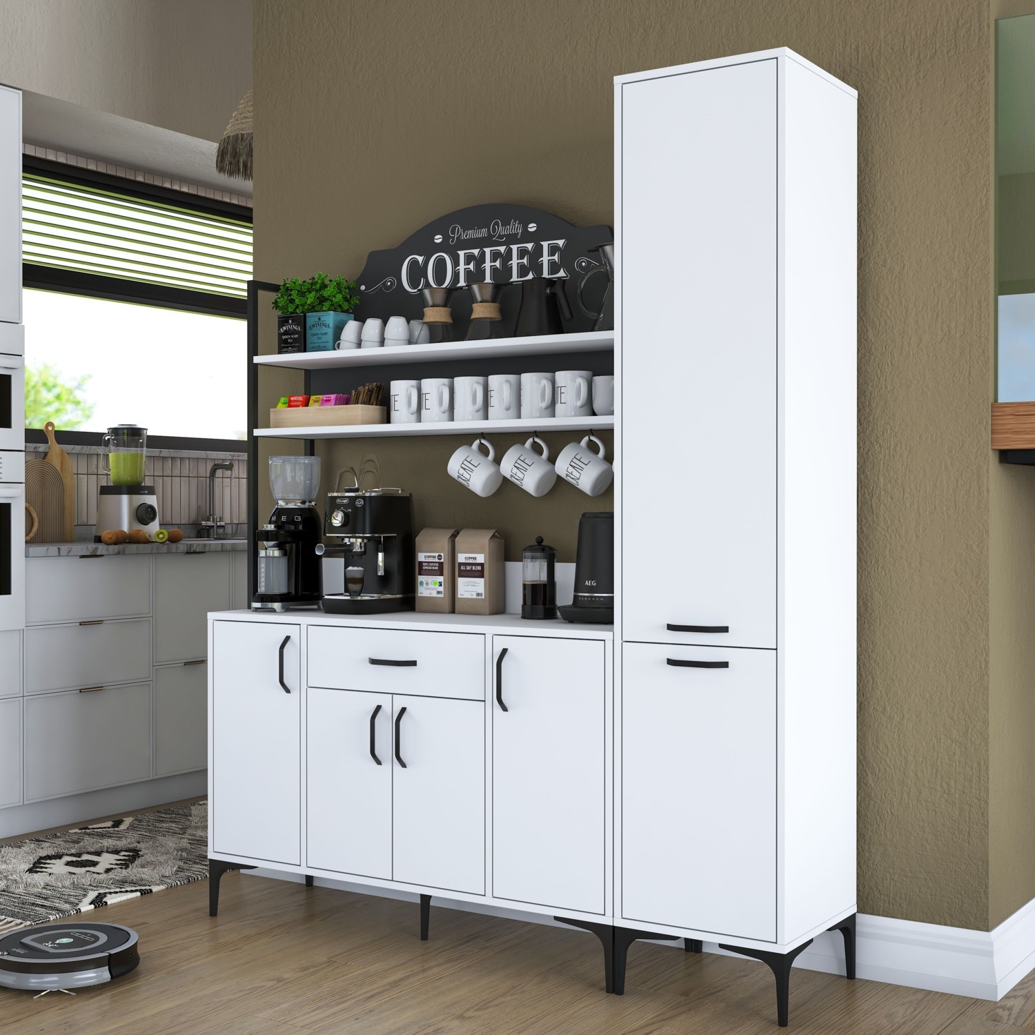 Rani JE149 Kahve Köşesi Çok Amaçlı Dolap 6 Kapaklı 1 Çekmeceli Kiler Mutfak Dolabı Beyaz