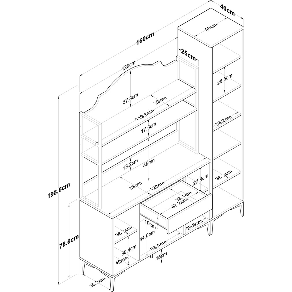 Genişlik: 160 cm – Derinlik: 40 cm – Yükseklik: 198,6 cm