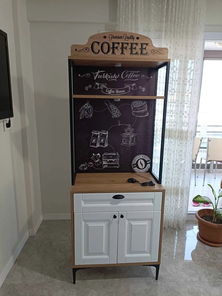 Hangimiz kahve köşesi hayali kurmadık kii:) alt kapağı bi tık oturtamadık en alt kısma ortaya bi raf biz ekledik. Firmadan istedim göndermedi ama canları sağ olsun. Güvenilir firma gönderi bir 10 gün buluyo çok şık ben çok beğendim ????