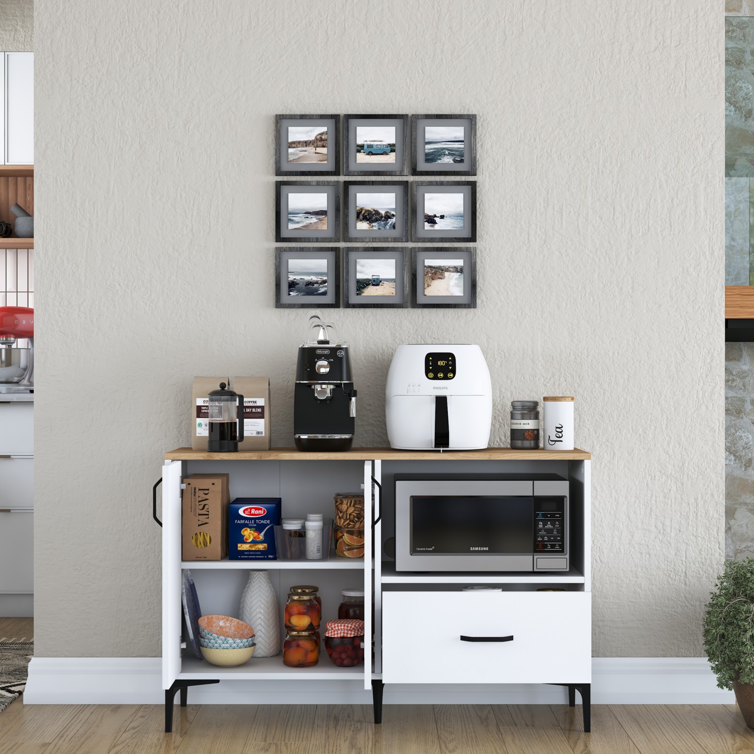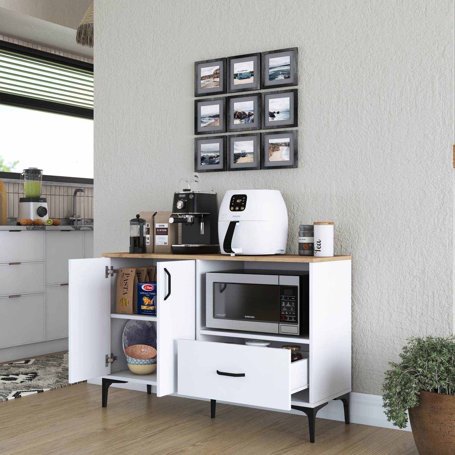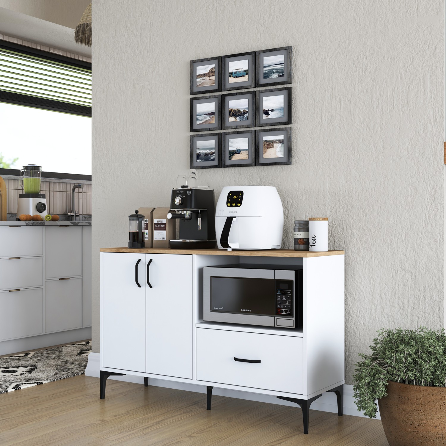 Rani JE161 Kahve Köşesi Çok Amaçlı Dolap 2 Kapaklı 1 Çekmeceli Kiler Mutfak Dolabı Beyaz – Sepet Ceviz