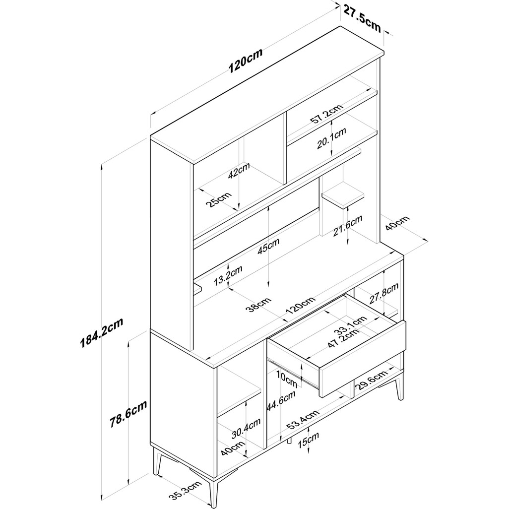 Genişlik: 120 cm – Derinlik: 40 cm – Yükseklik: 184,2 cm