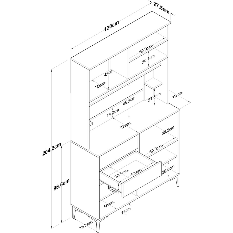 Genişlik: 120 cm – Derinlik: 40 cm – Yükseklik: 204,2 cm