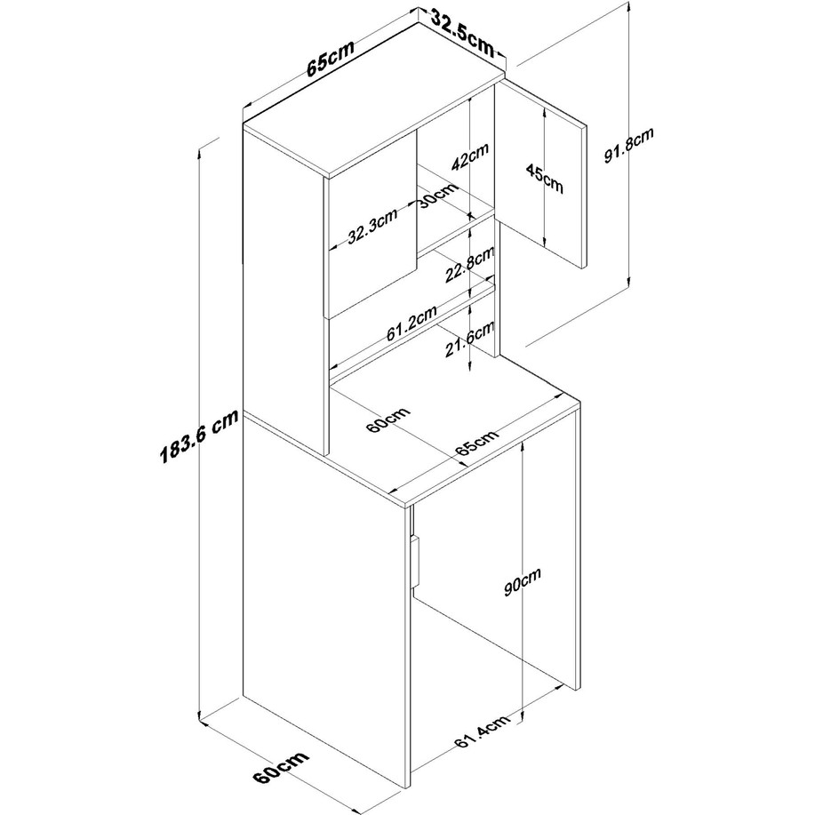 Çamaşır Makinesi Dolabı: Genişlik: 65 cm – Derinlik: 60 cm – Yükseklik: 183,6 cm