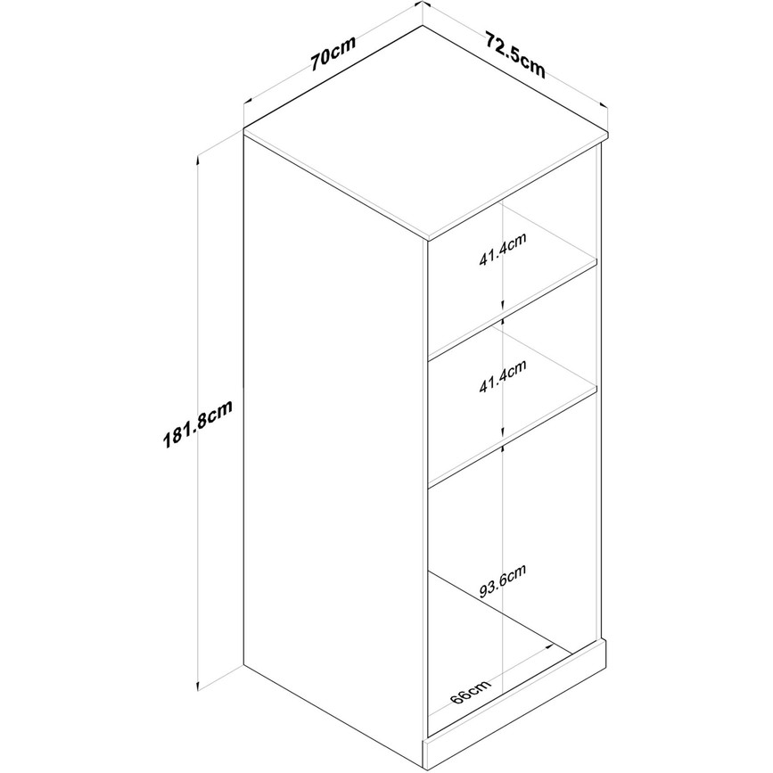 Çamaşır Makinesi Dolabı: Genişlik: 70 cm – Derinlik: 72,5 cm – Yükseklik: 181,8 cm