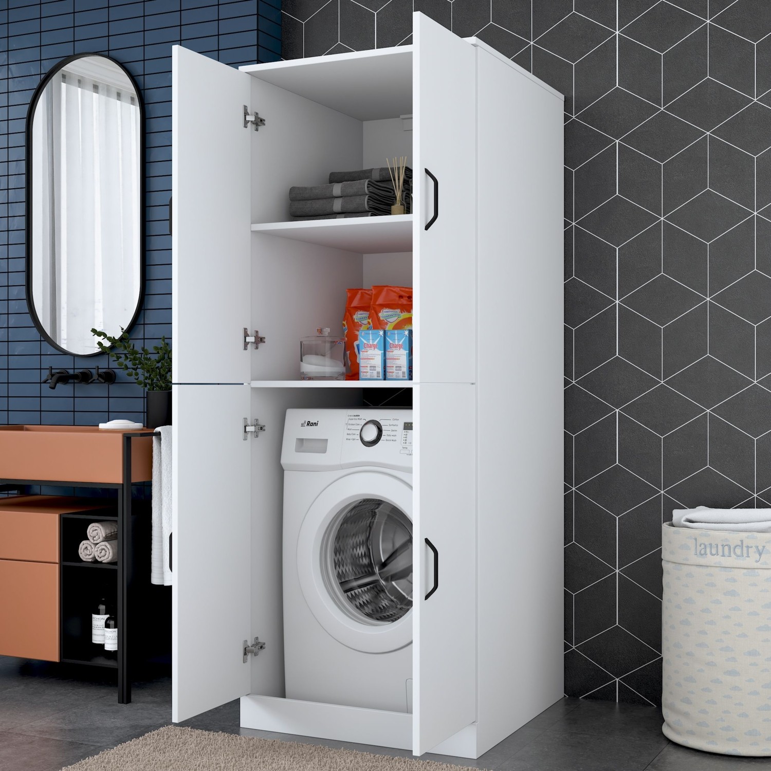 Rani KD109 Çamaşır Makinesi Dolabı 4 Kapaklı 2 Raflı Banyo Dolabı Beyaz