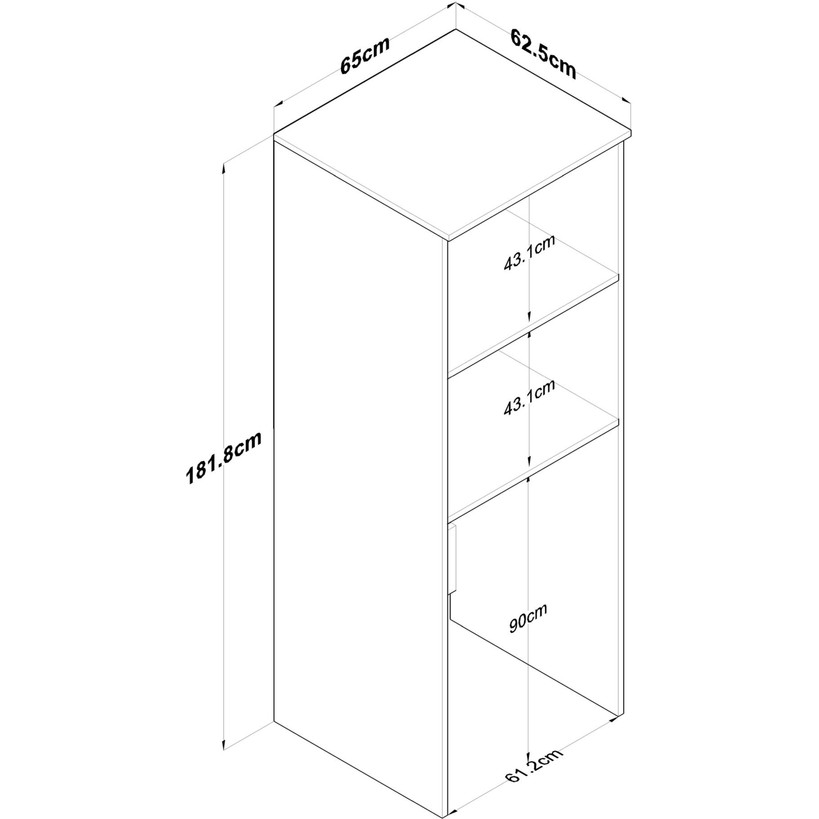 Çamaşır Makinesi Dolabı: Genişlik: 65 cm – Derinlik: 62,5 cm – Yükseklik: 181,8 cm