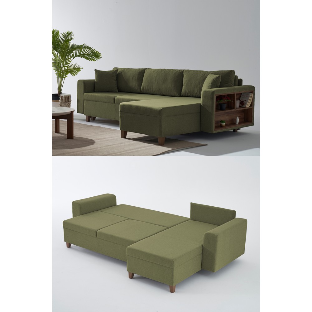 rengar köşe takımı & yataklı bazalı keten kumaş köşe koltuk takımı – yeşil b18