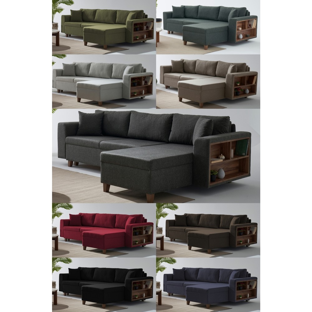 yatak olabilmektedir. Depolama için bazası mevcuttur. Köşe yönü ve kitaplık yönü sağ-sol olarak değiştirilebilir. Gürgen ağacı iskelet kullanılmıştır. 30dns soft sünger kullanılmıştır. Ürün ölçüleri: • genel ölçü: genişlik: 270 cm – derinlik: 150 cm – yükseklik: 80 cm baza iç ölçü: genişlik: 150 cm – derinlik: 60 cm – yükseklik: 12 cm yatak iç ölçüsü: 230 x 150 cm • kırlent ölçüsü: 40 x 40 cm • sağ-sol köşe uzanma yönünü dilediğiniz gibi değiştirebilirsiniz. Özel renk & kumaş seçimlerinde iade yapılmamaktadır.