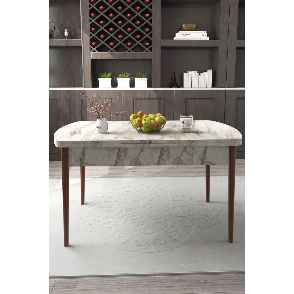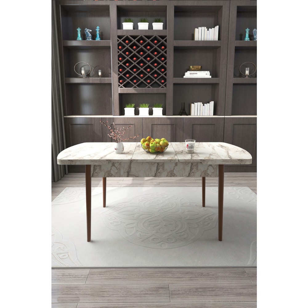 Renlife Yemek Masası Mutfak Masası Ahşap Ayaklı Masa Oval Açılır Masa (Beyaz Mermer)