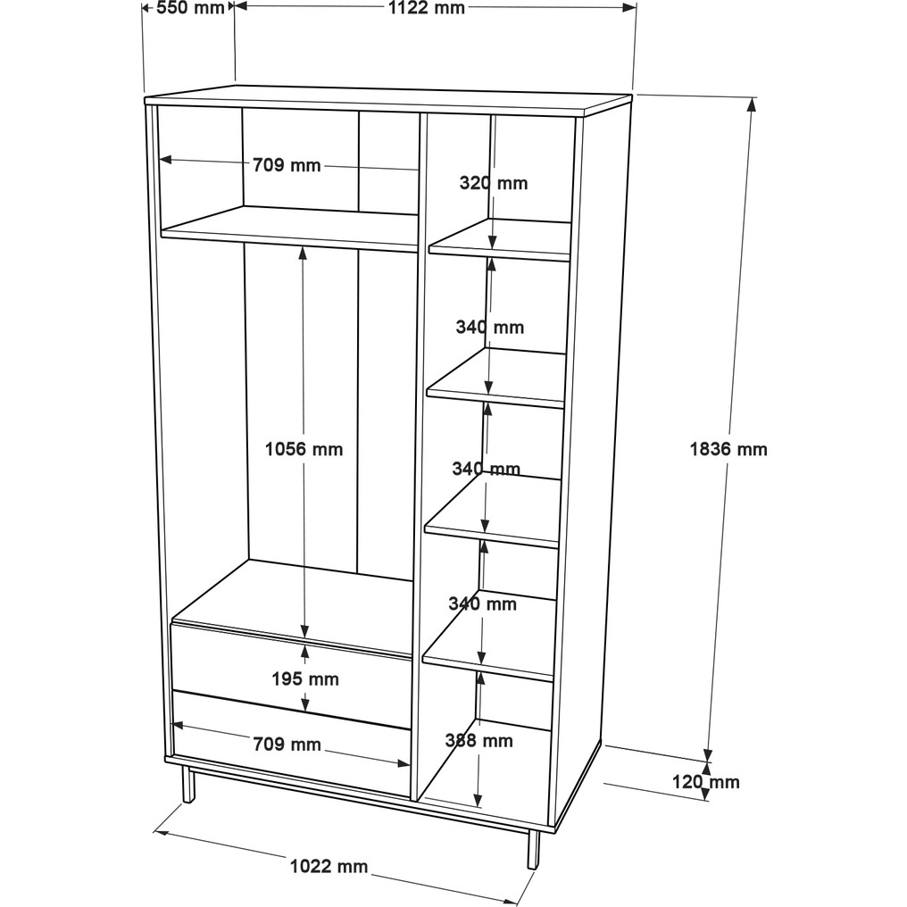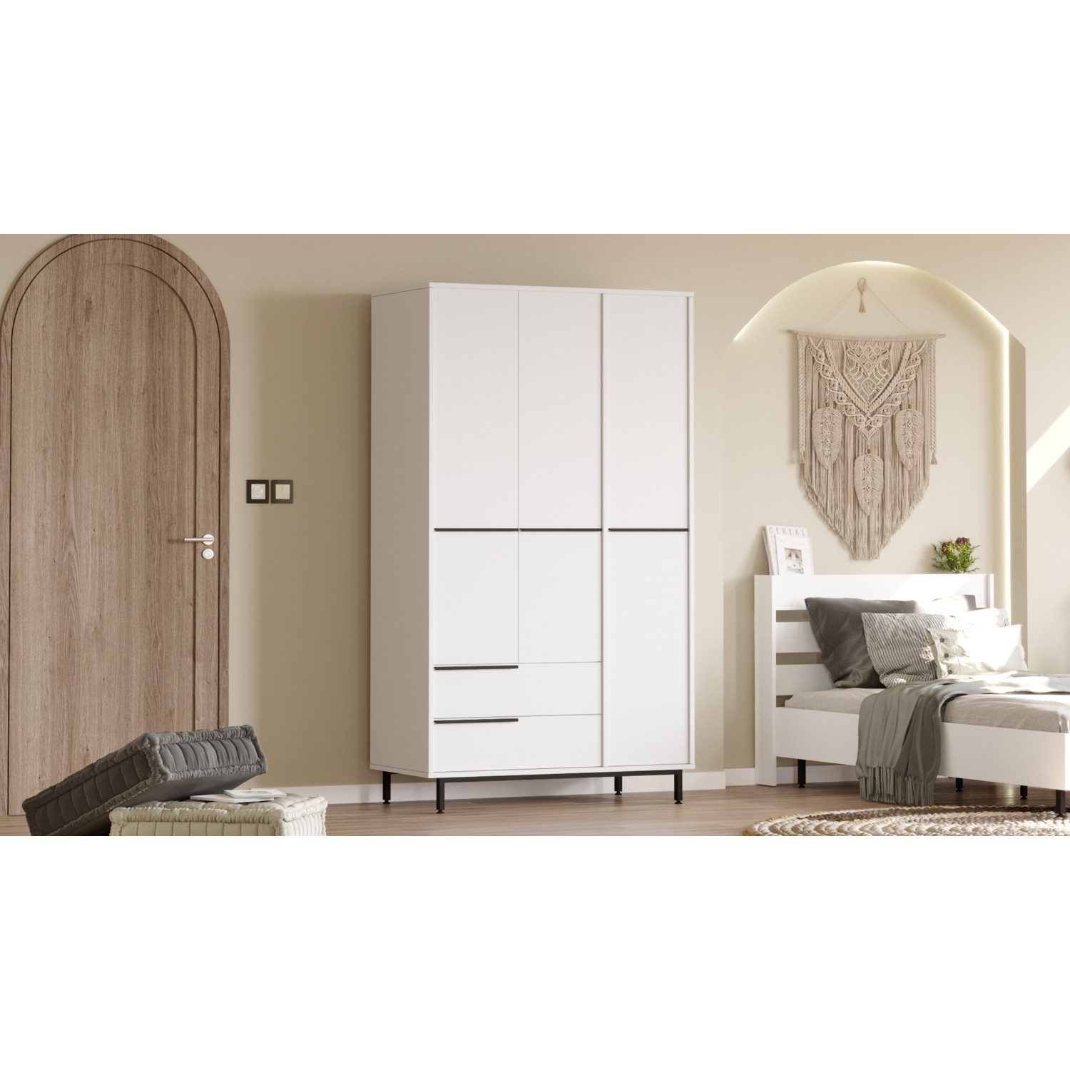 Robin Home Lidya Gardırop 3 Kapı 2 Çekmece Metal Ayaklı 196cm Beyaz