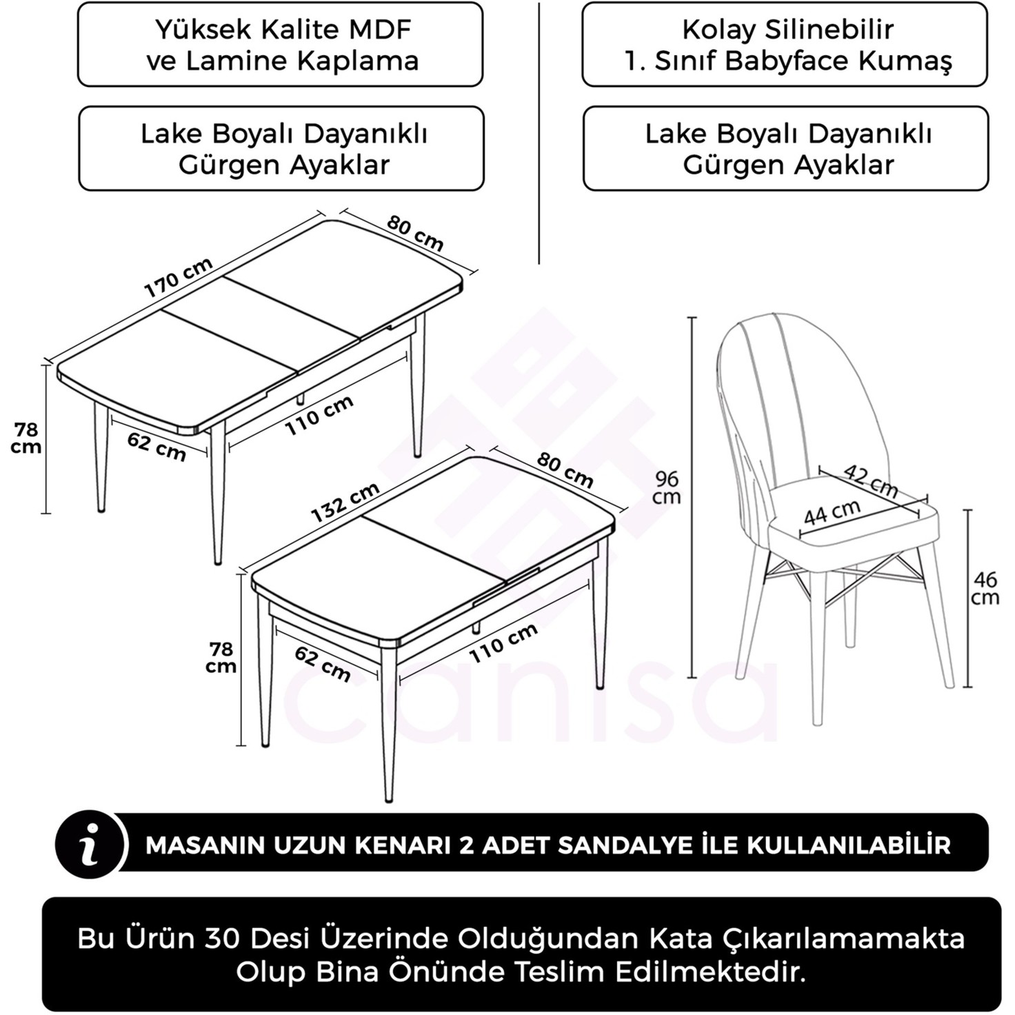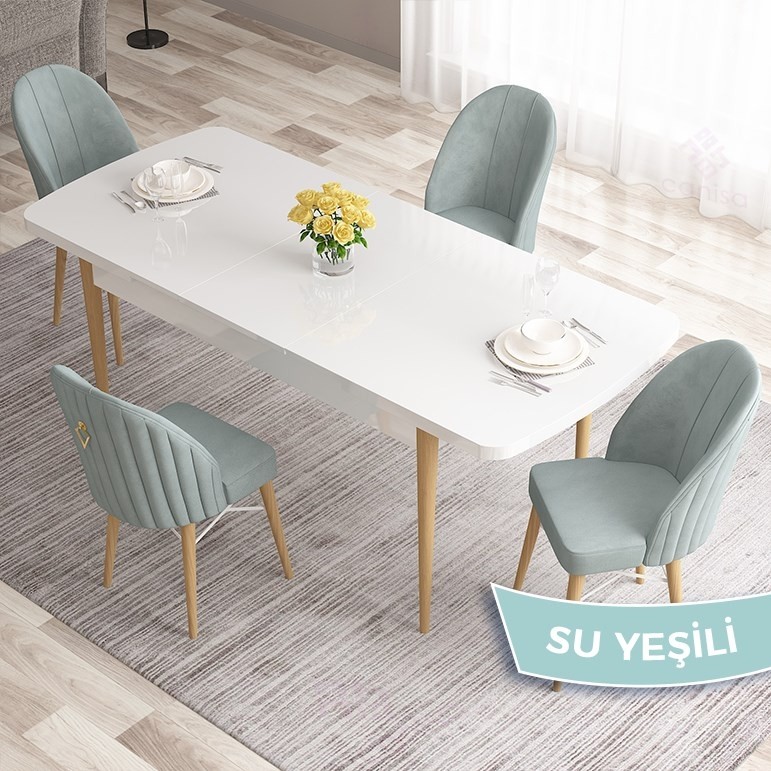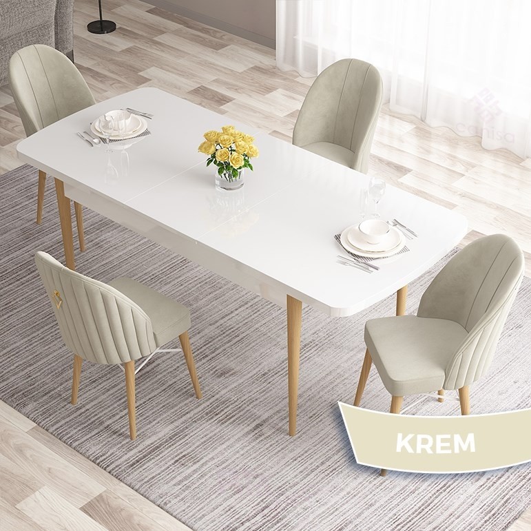 Roz Serisi 80×132 Mdf Beyaz Masa Açılabilir mutfak Masası Takımı