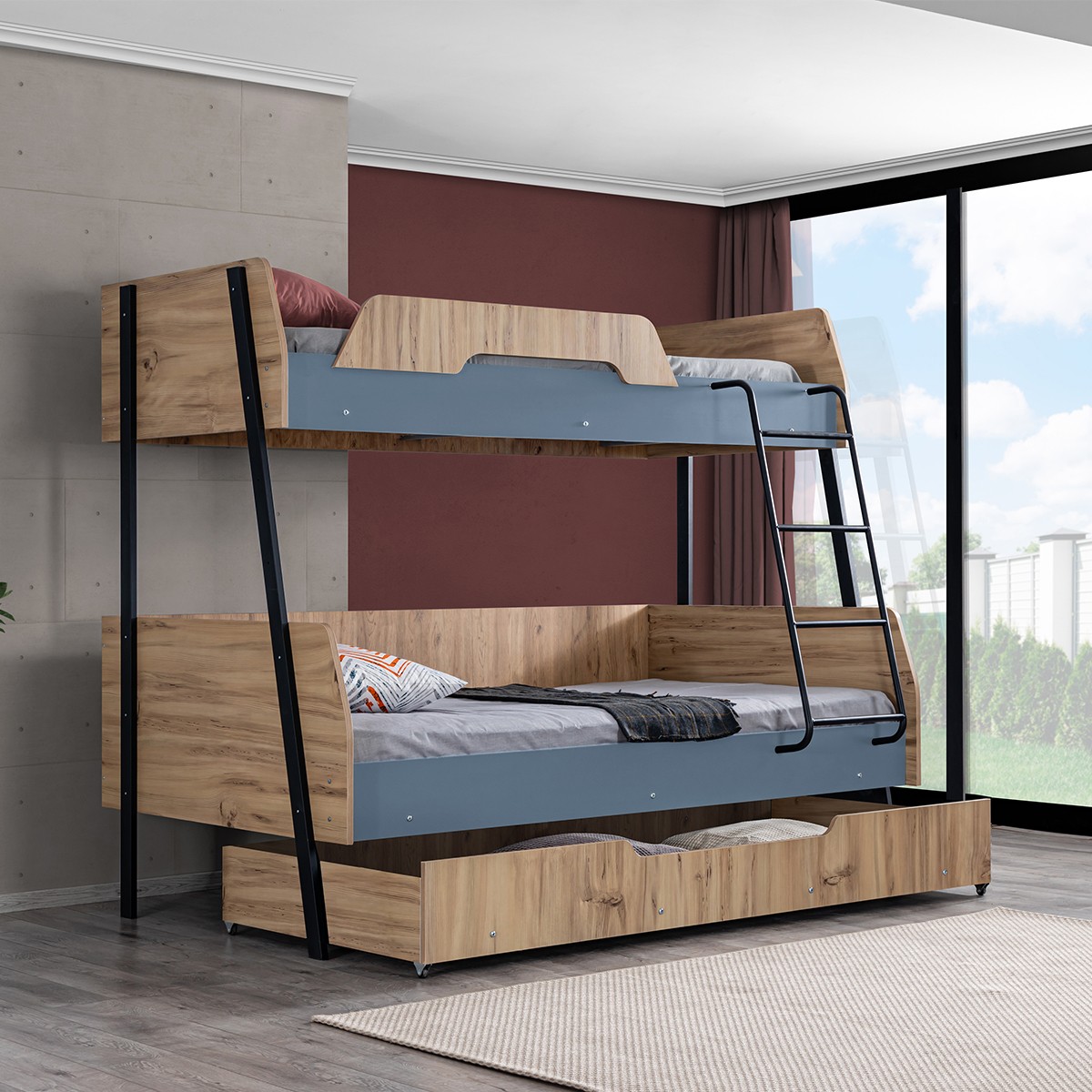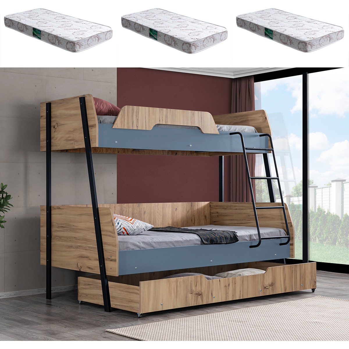 Setay Alba Yavrulu Geniş Ranza, Mavi + 3 Adet Comfort Yatak