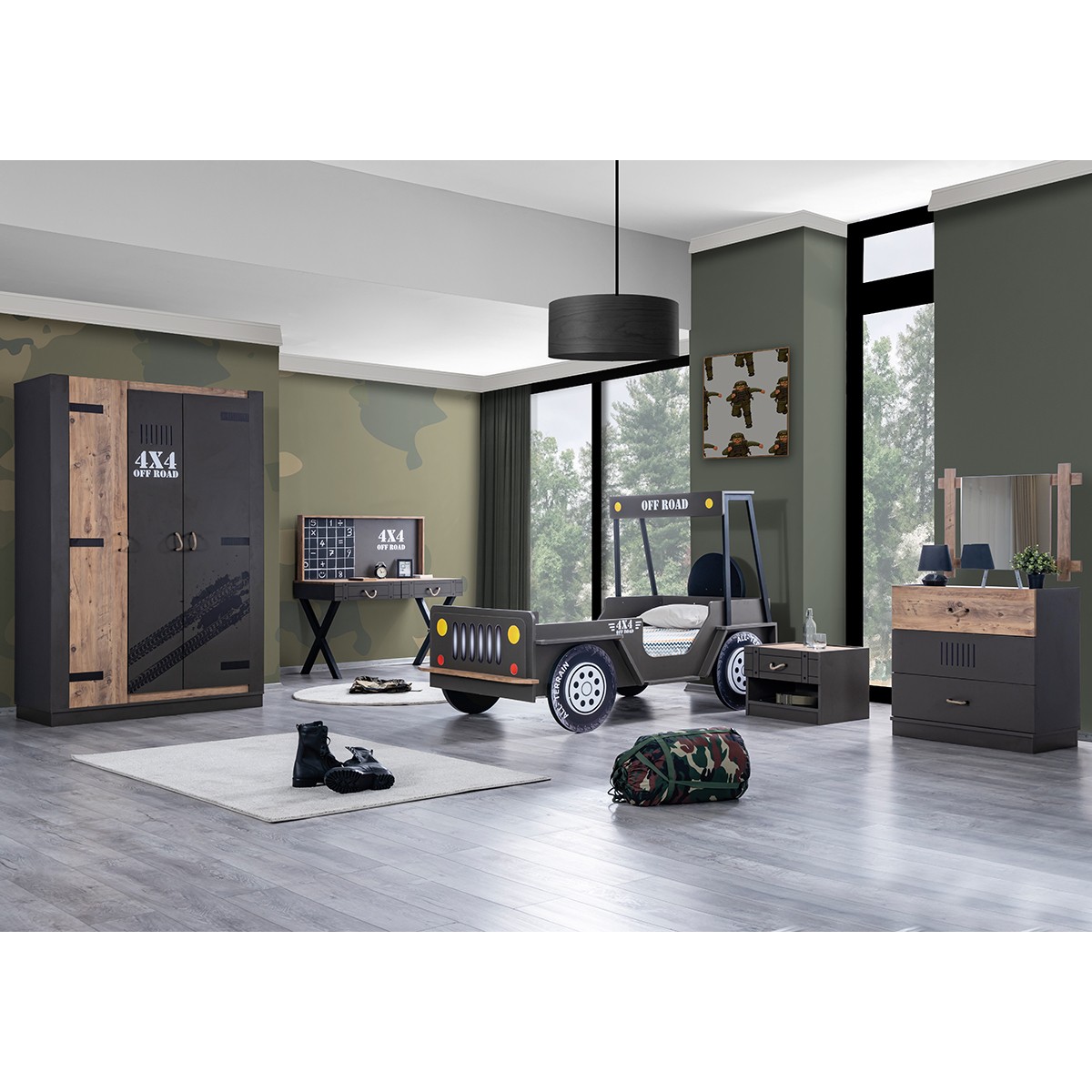 Offroad Jeep Çocuk Odası Takımı; Dolap, Karyola, Şifonyer, Çalışma Masası ve Komodinden oluşmaktadır.