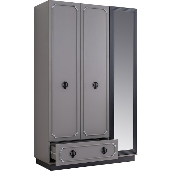 - Dolap 3 kapaklı, 1 çekmeceli ve dolap kapakları düz menteşelidir.