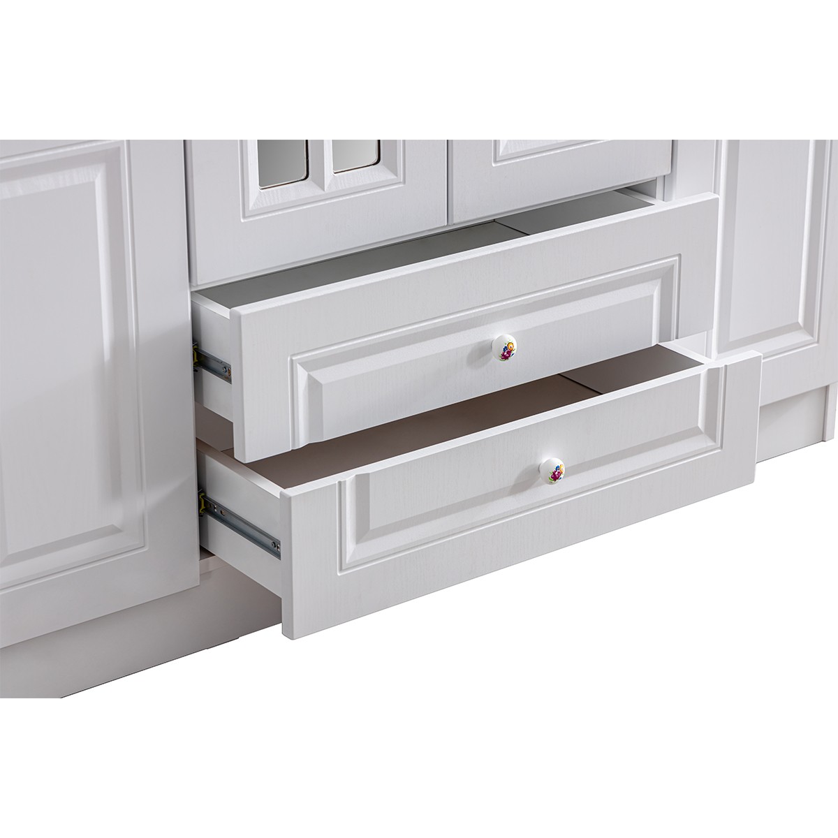 çekmecelerde çift açılım teleskobik ray sistemi kullanılmıştır. Çekmeceler 70 x 40 x 17 cm ölçüleri ile geniş saklama alanı sunmaktadır.