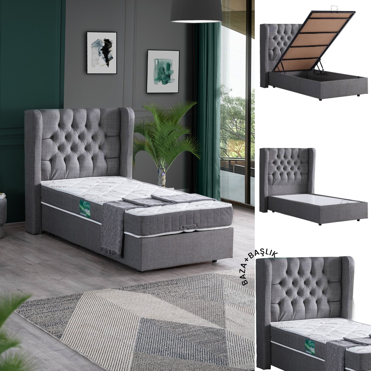 Setay Riga İkili Set Tek Kişilik Baza Başlık – Gri