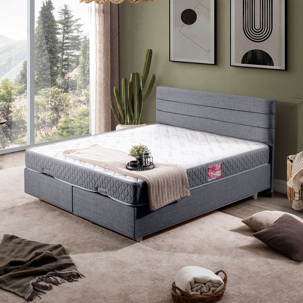 Setay Sofia İkili Set Çift Kişilik Baza Başlık – Gri
