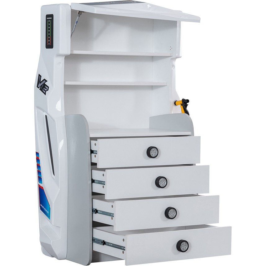 Çalışma masası ve şifonyerin gösterge ve yan panelleri ABS plastiktir. Üzerlerinde sticker aksesuarlar vardır.