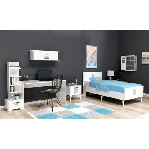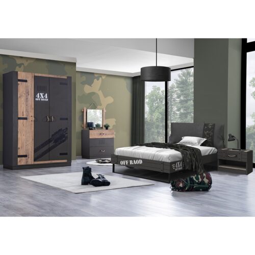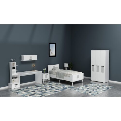 Takım içeriği:  Audi Arabalı Yatak, 3 Kapaklı Dolap, Çalışma Masası ve Şifonyerden oluşmaktadır.