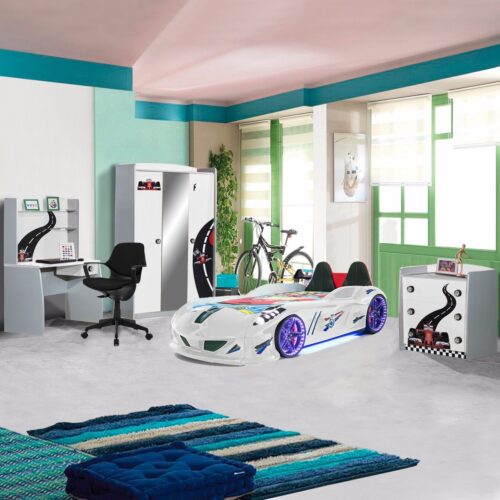 Setay Sports Çocuk Odası Takımı, Beyaz – Audi Arabalı Yatak – Dolap – Masa – Şifonyer